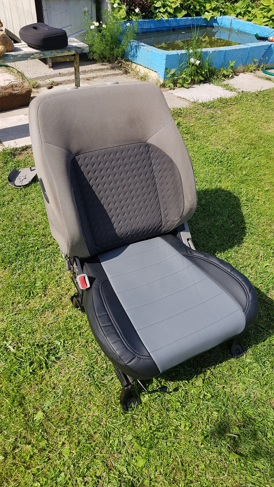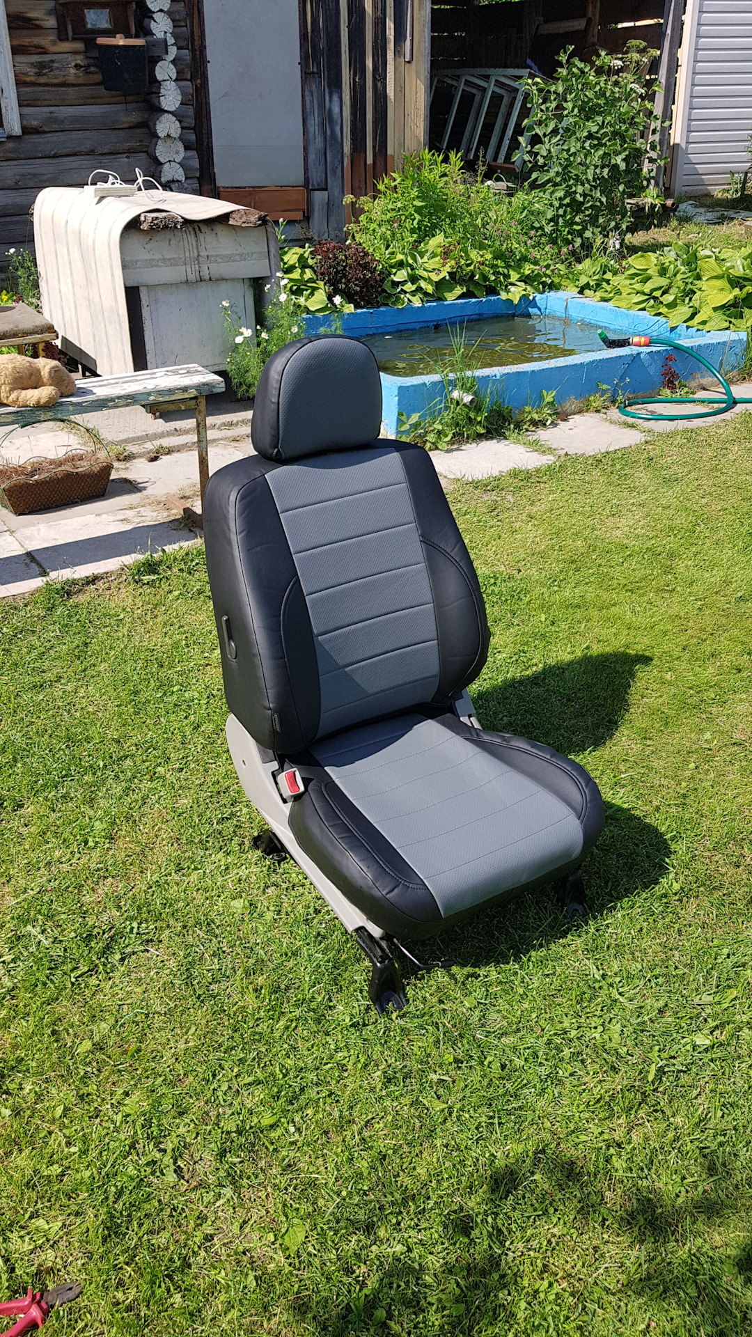 Задние сидухи под её давлением одел уже давно, т.к. там нет ни чего сложного, а вот до передних, которые надо полностью снимать и немного разбирать, руки, с её же пинка, дошли только недавно. Было строго сказано о том, что на Яровое без чехлов не поедем.))) Весь процесс происходил на даче. Заодно немного переделал и задние сидушки. Немного покатаю и надо будет сделать подтяжку передних сидений. Задние уже подрастянулись и сели как надо.