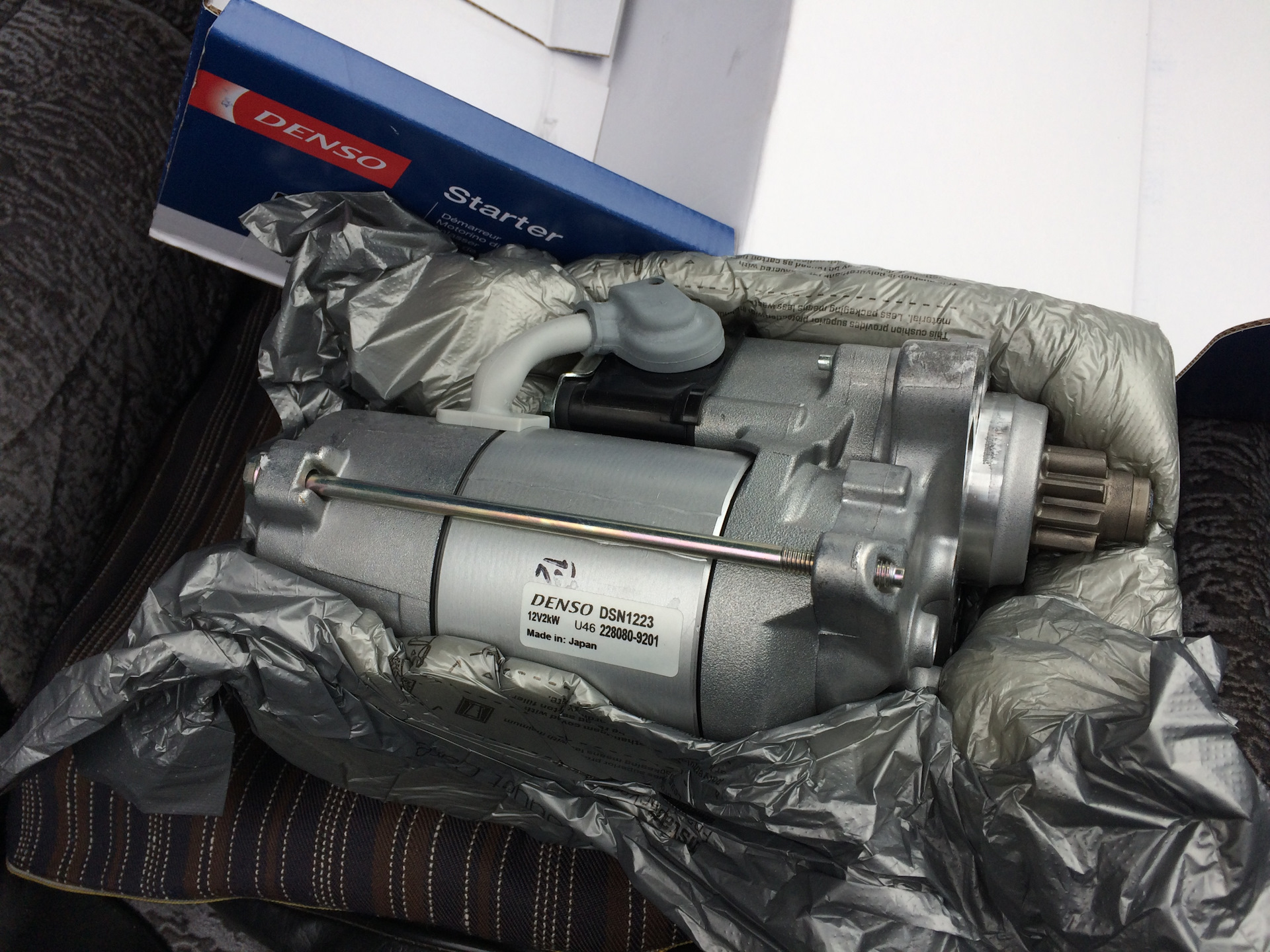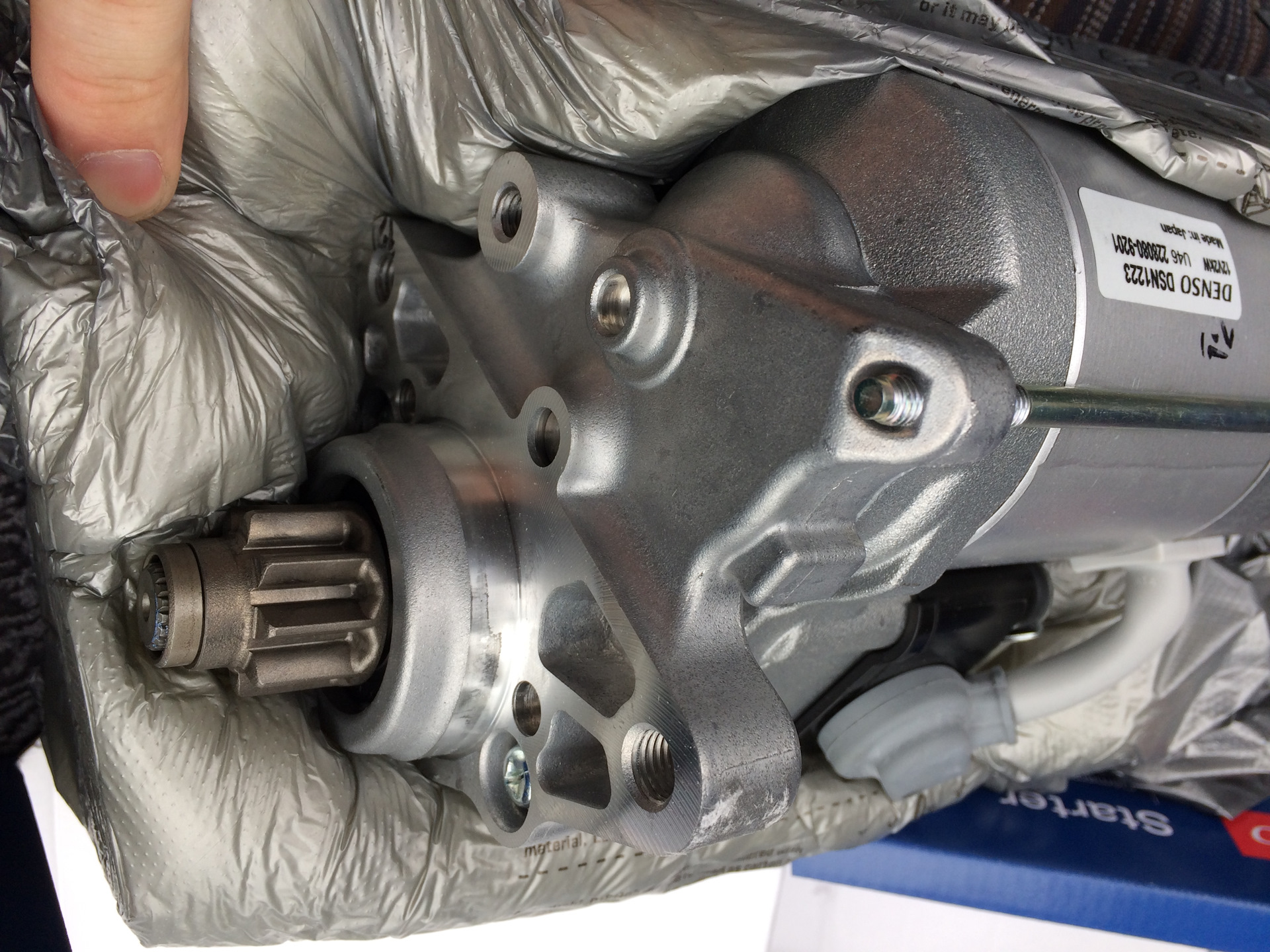 Ну и третье "открытие", совершенное через кросс-номера дублей и последующие опросы на форумах, это то, что стартеры для 2UZ-FE, похоже что, ВСЕ взаимозаменяемые. То есть не важно, ТЛК100, Секвоя, 4Раннер или еще что там у вас — маховики одинаковые и стартеры подходят. Но и это не всё! Ведь были ещё 1UZ и 3UZ моторы. И знаете? Все подходит. Найденный мной Denso DSN12-23 бился по каталогам только для "легкового" 3UZ-FE, обладал 2 киловаттами мощности и 9 зубьями, вращающимися по часовой стрелке. Немного мук "а подойдет ли?", немного вопросов в интернете и я решился на покупку. 14 тысяч рублей. Denso. Made in Japan. 3 дня ожидания. Мне кажется, это джек — пот. Все, естественно, собралось нормально.