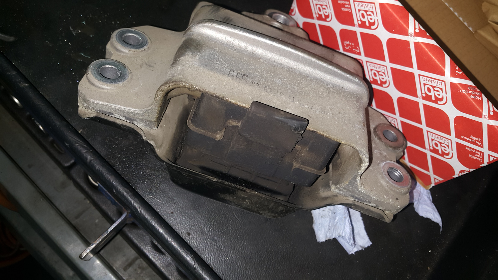 Меня с прошлого года стали напрягать вибрации на кузове, даже после снятия вставки в нижнюю опору КПП, и даже после её замены ситуация не улучшилась. Кроме того, я заметил, что и переключения стали немного медленными. Решил заменить левую подушку (под КПП) на Febi 22934.