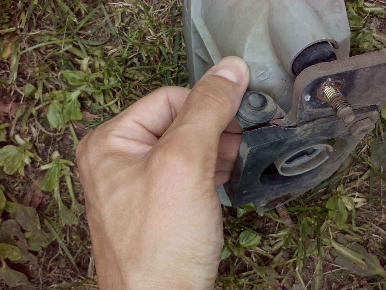 Вторая вещь, которая давненько напрягала — это левая ПТФ, которая болталась. Сначала не предавал этому особого значения, но потом увидел, что она стерла краску с бампера. Тут уже без вариантов — надо делать) Причина оказалась простая — сломанные крепления… Снимаем ПТФ, открутив 2 болта и выдернув фишку лампы, а дальше вынимаем два пистона и снимаем крепление с самой ПТФ.