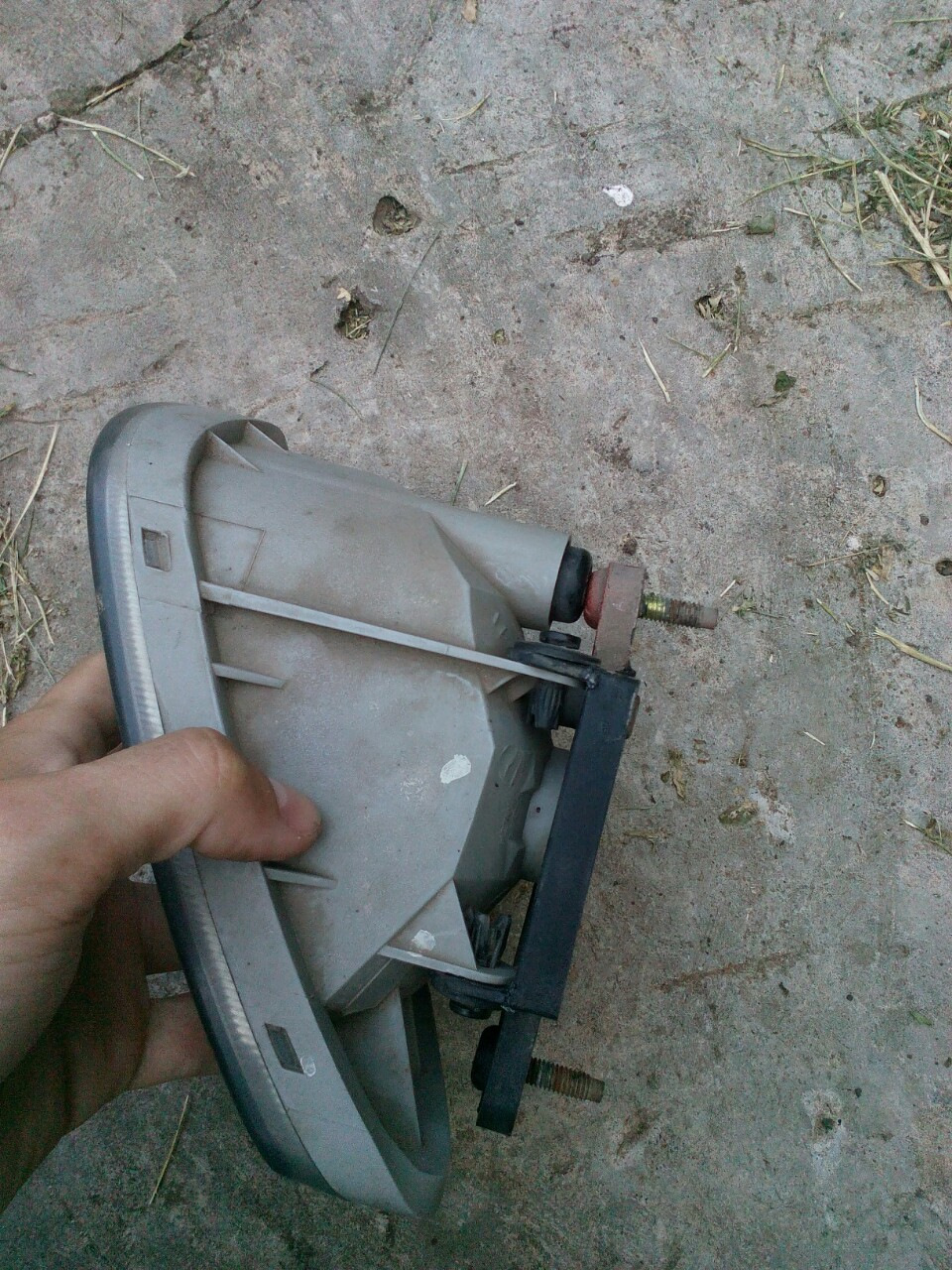 Далее снимаем фары, откручиваем 3 болта, два сверху и один сбоку, головкой на 10. После этого тянем фару на себя и она выходит из пазов, отключаем разъемы с проводами.