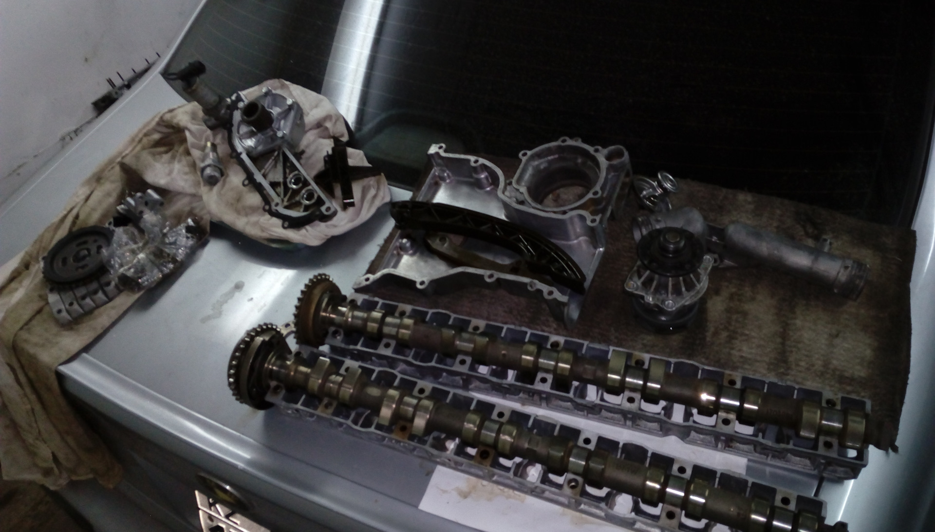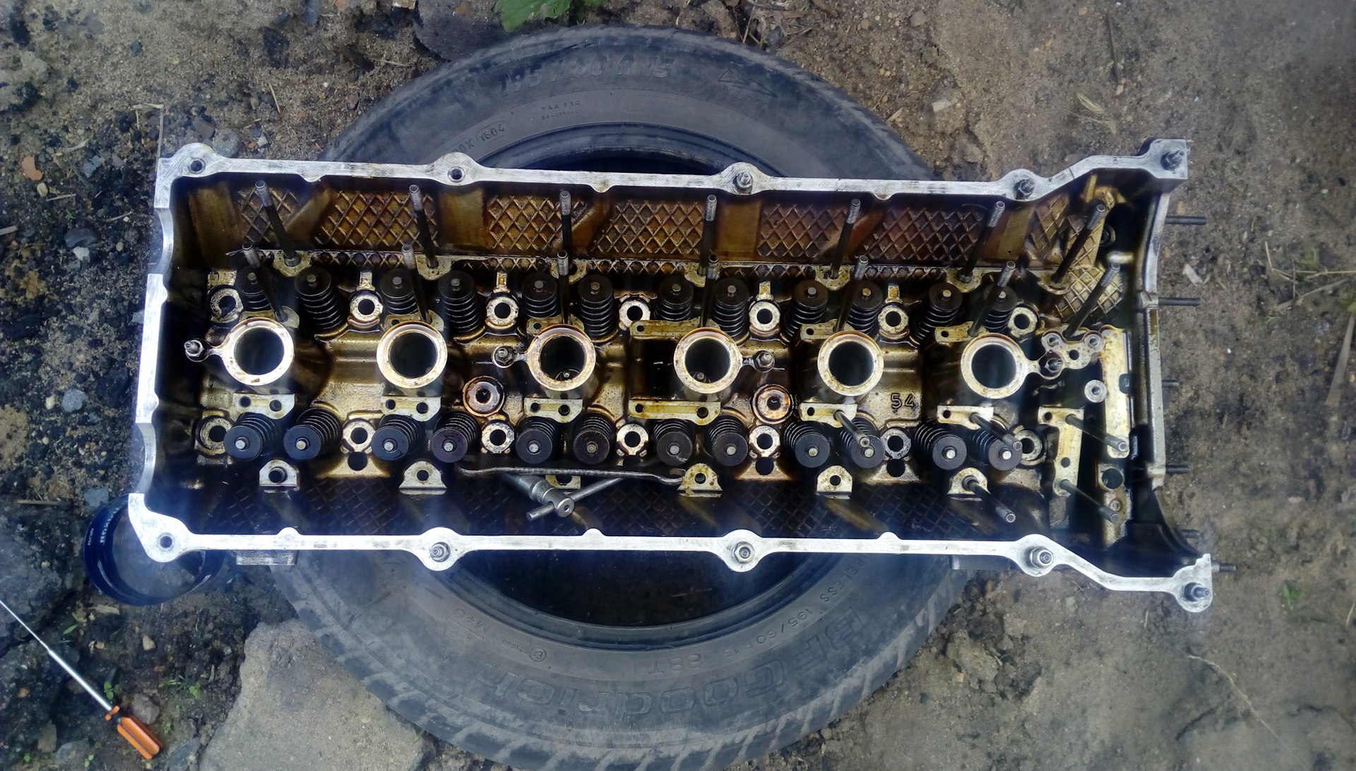 Всю предыдущую неделю разбирал двигатель.Начал как всегда с навесного, снял впуск, выпуск, снял гбц, чтоб и легче было дергать двигатель, да и чтобы сразу ее отмыть и в ремонт.По головке выходит замена МСК, направляющих, притирка клапанов.