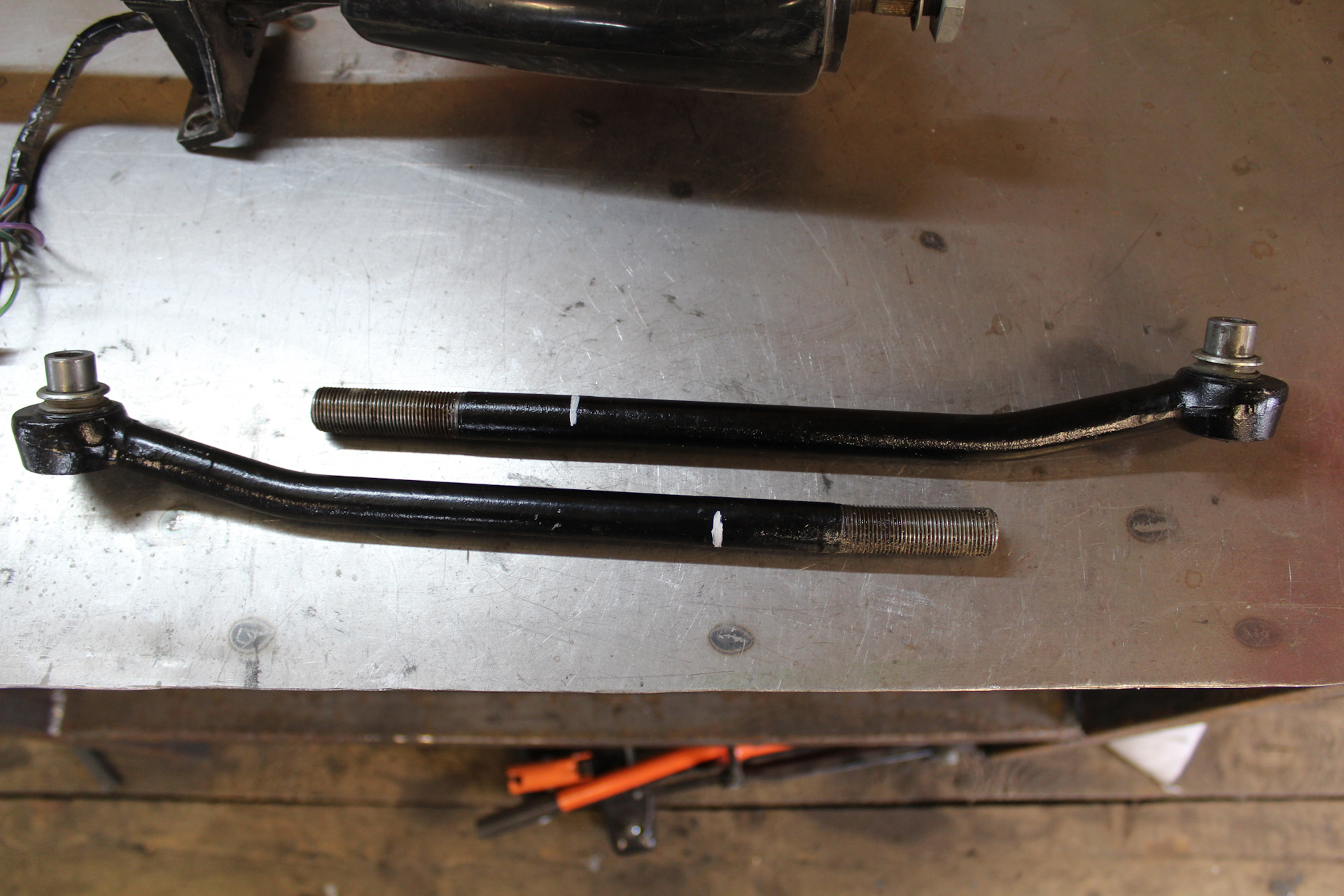 Значит моторный щит я выкинул и буду изготавливать подобные крепления, но не в этом бортовике. А все потому, что вслед за рычагам и приводами, необходимо укоротить и рулевые тяги. Их пилить и варить я не стал, потому что считаю, что можно обойтись удлинением резьбы на тягах вот на столько, а остальное отпилить