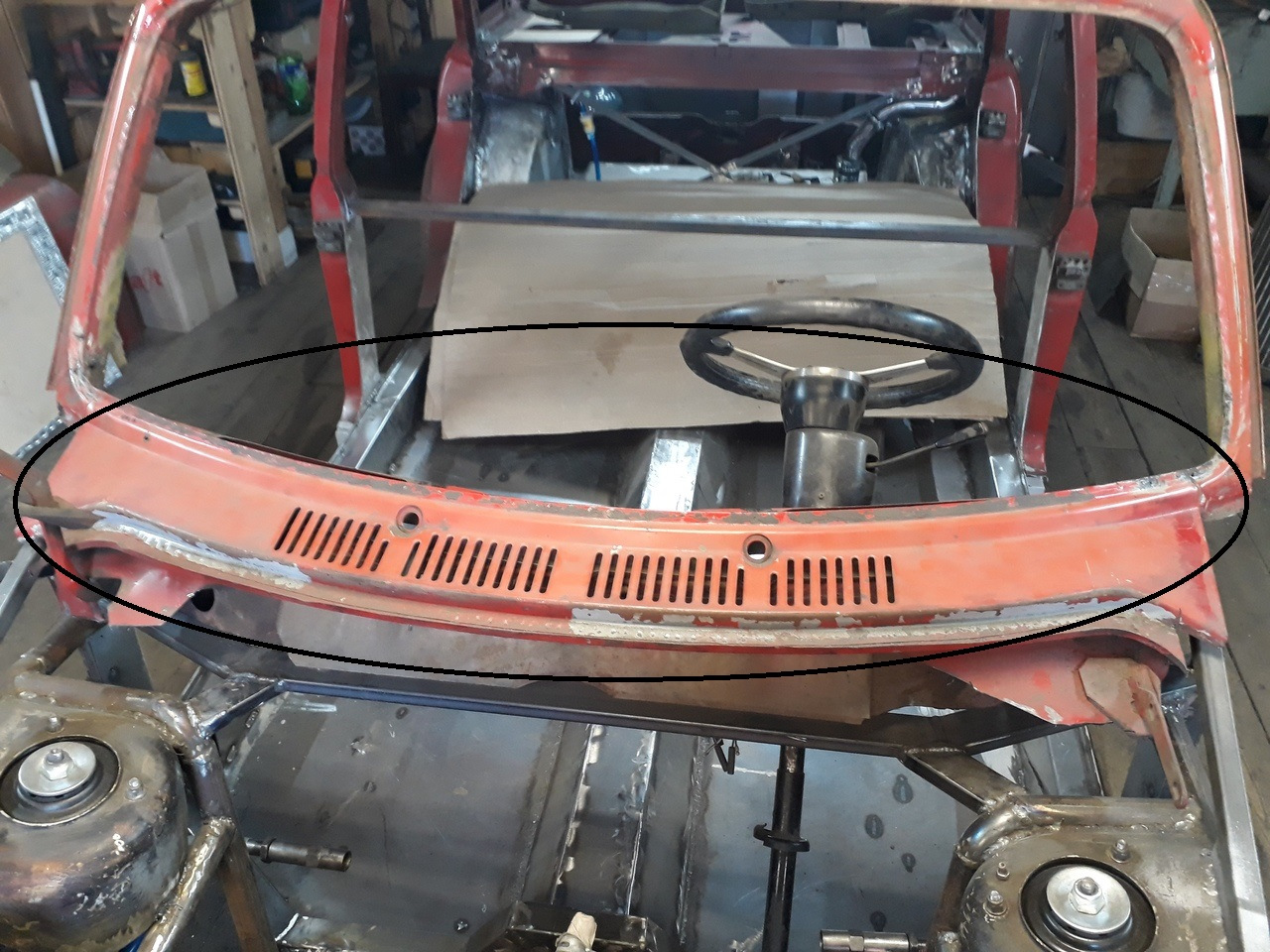 Кстати, отпилил я временные усиления, которые держали рамку лобового стекла, сейчас, когда машина стоит на колесах, я посчитал, что в них нет обходимости. И как же я офигел, когда увидел вот такую картину