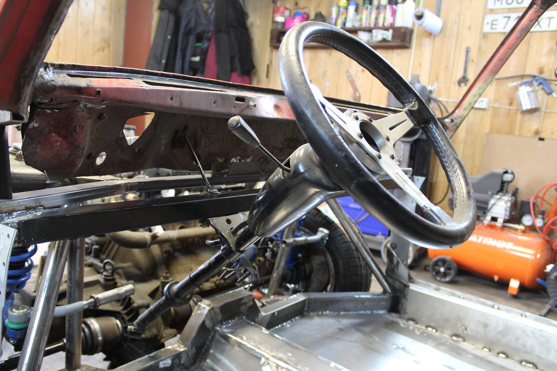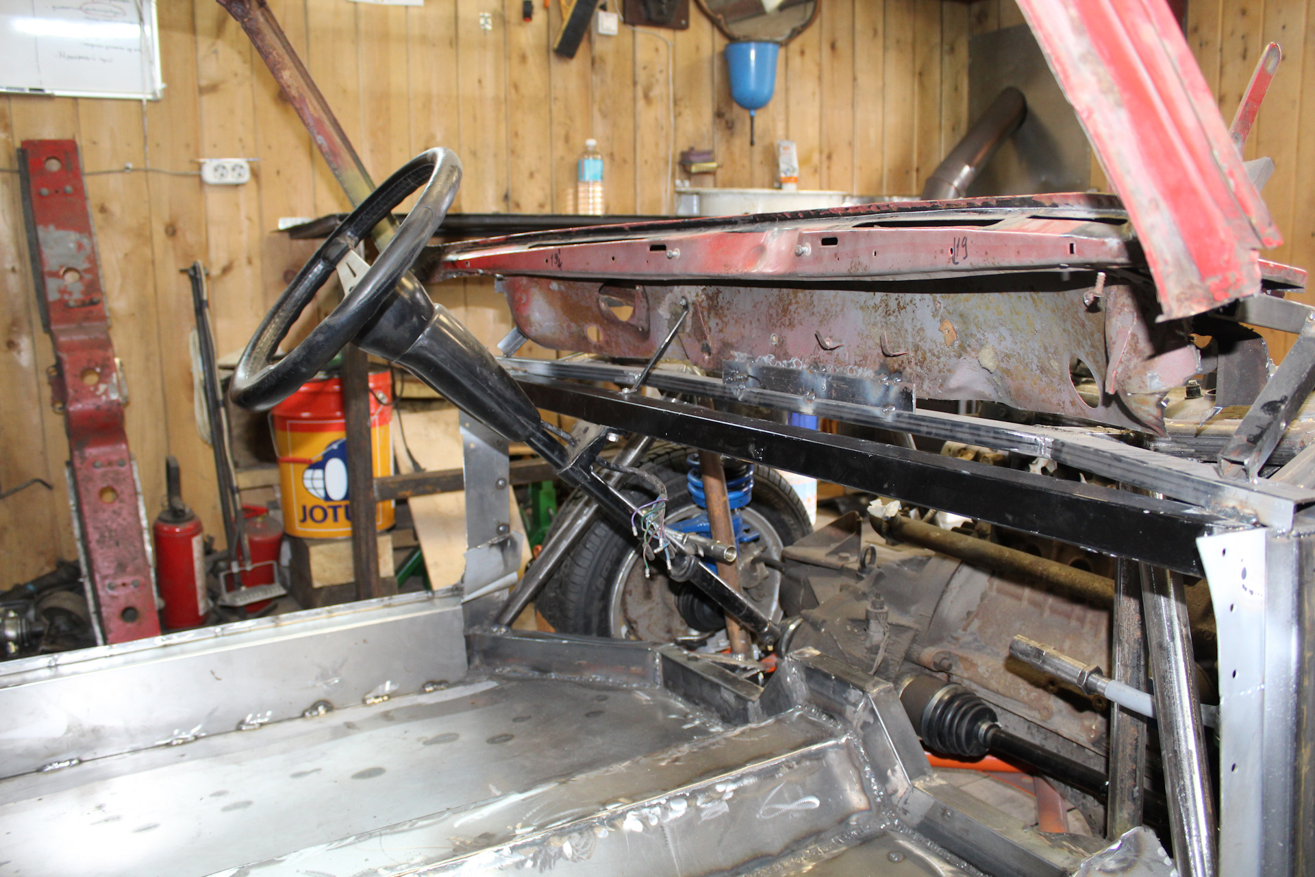 Чисто теоретически, должно сработать. Проверю, когда поставлю рейку. Самые внимательные заметили на фотке рулевую колонку. Да, я восстановил штатную поперечину, к которой крепится рулевая колонка и торпеда, покрасил ее и приварил