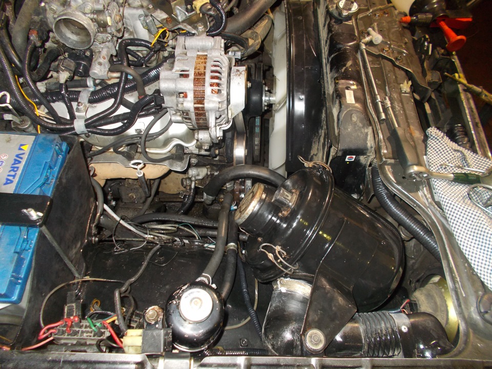 Зачистил и покрасил корпус воздушного фильтра, предварительно сняв и почистив ДМРВ, также покрасил новое крепление аккума. Поставил все обратно, заново посадив на герметик заборник воздушного фильтра.