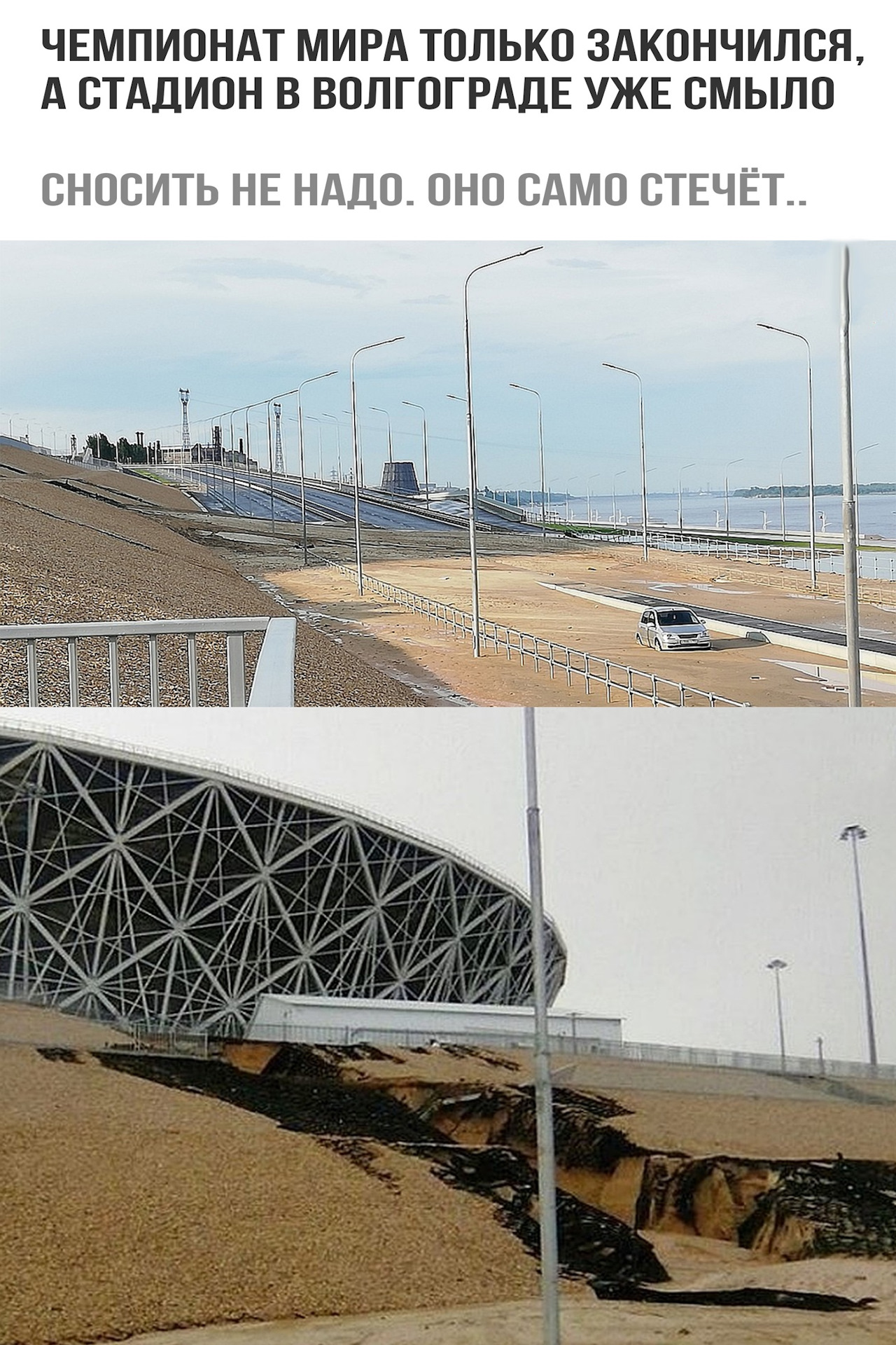 Как вы наверняка слышали — в Волгограде прошли сильные ливни… Да такие, что "гордость города" — новый стадион чуть не смыло в Волгу))…