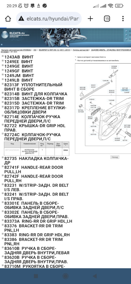 Где-то 2,5 года, а может и больше я ездил без маленького резинового коврика который должен находится в ручке передней правой двери. Ни самостоятельный поиск не посещение отдела запчастей ОД результата не дал. Ну не было его даже на схеме отделки двери. И вот совсем недавно state55 в своей записи 21. Исправление недочетов написал номера этих микроковриков. За что ему земной поклон)))) Тут же был заказан передний правый микроковрик, и