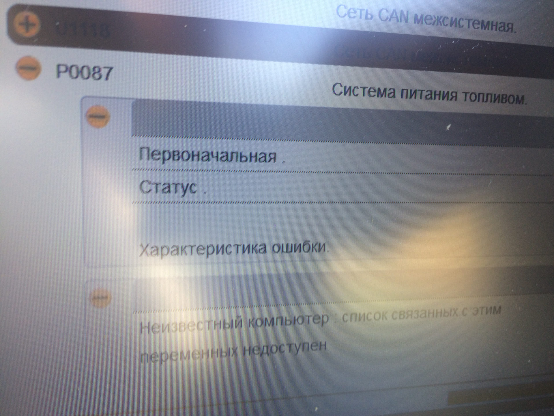 Первое что пришло на язык это фраза «ВотСу…ка». Ладно перезапускаем, чисто и больше в этот день не появлялось. На следующий день, та же Истрия с перезапуском и все гуд. Через пару дней вообще все чисто. Думаю ладно, значит одумалась зараза. Хренушки я там радовался, ещё через день индикатор меня опять радует. Пришлось тащиться в город за лексией, которая меня порадовала ошибкой P0087, тут опять пришла на язык фраз «Вот Су…ка»