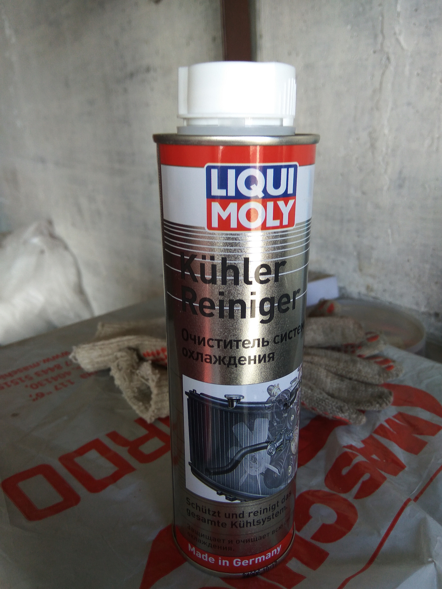 В старый антифриз заливал чтобы все очистилось, а водой потом промывал. Называется Очиститель системы охлаждения Kuhler-Reiniger артикул 1994. В интернете под этой маркой только он.