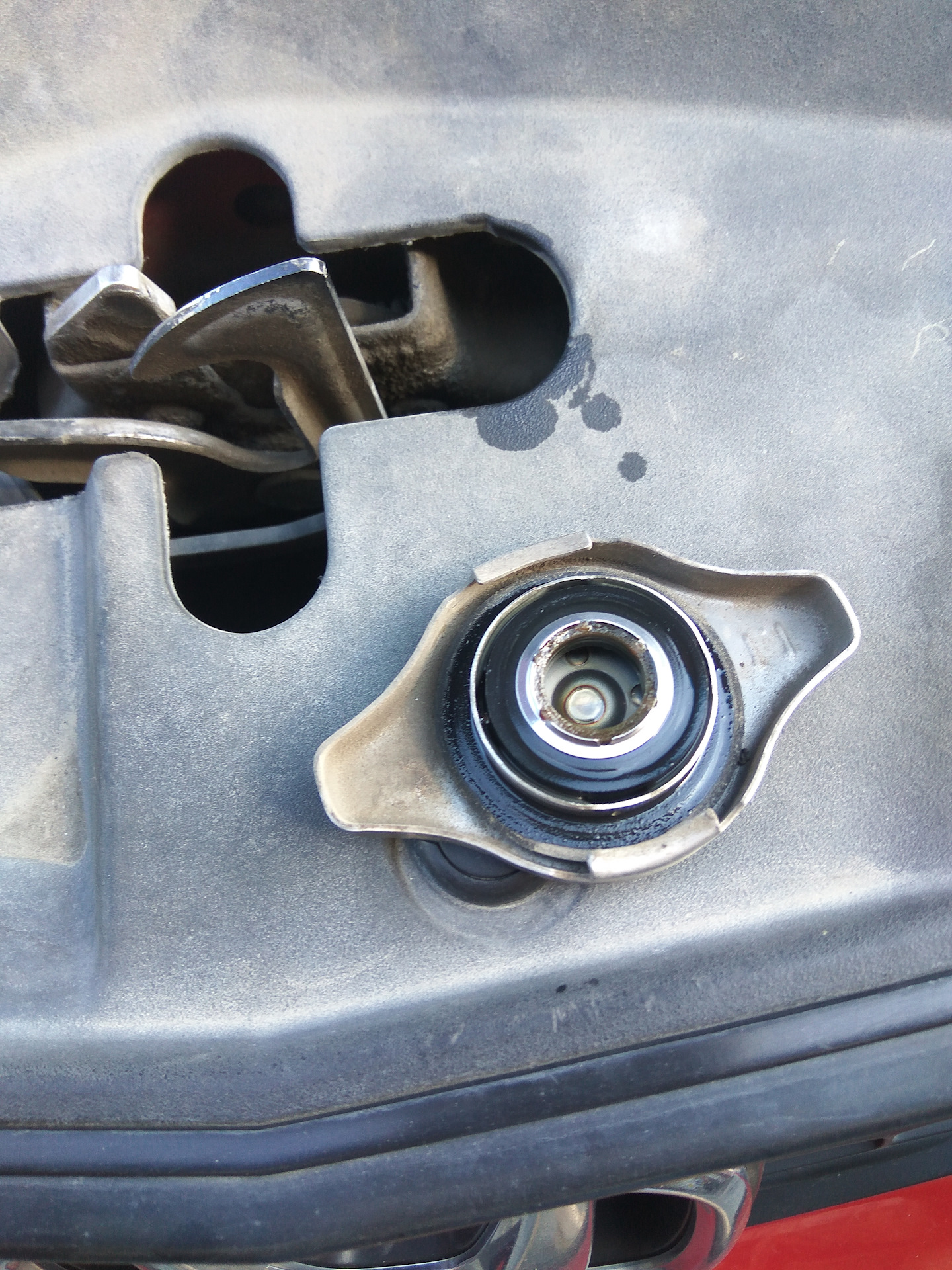 На следующий день пришел утром в гараж, выгнал Аккордиона, ну думаю сейчас залью очиститель в радиатор и поеду за водой. Но откручиваю я крышку радиатора и вижу что крышке кранты.