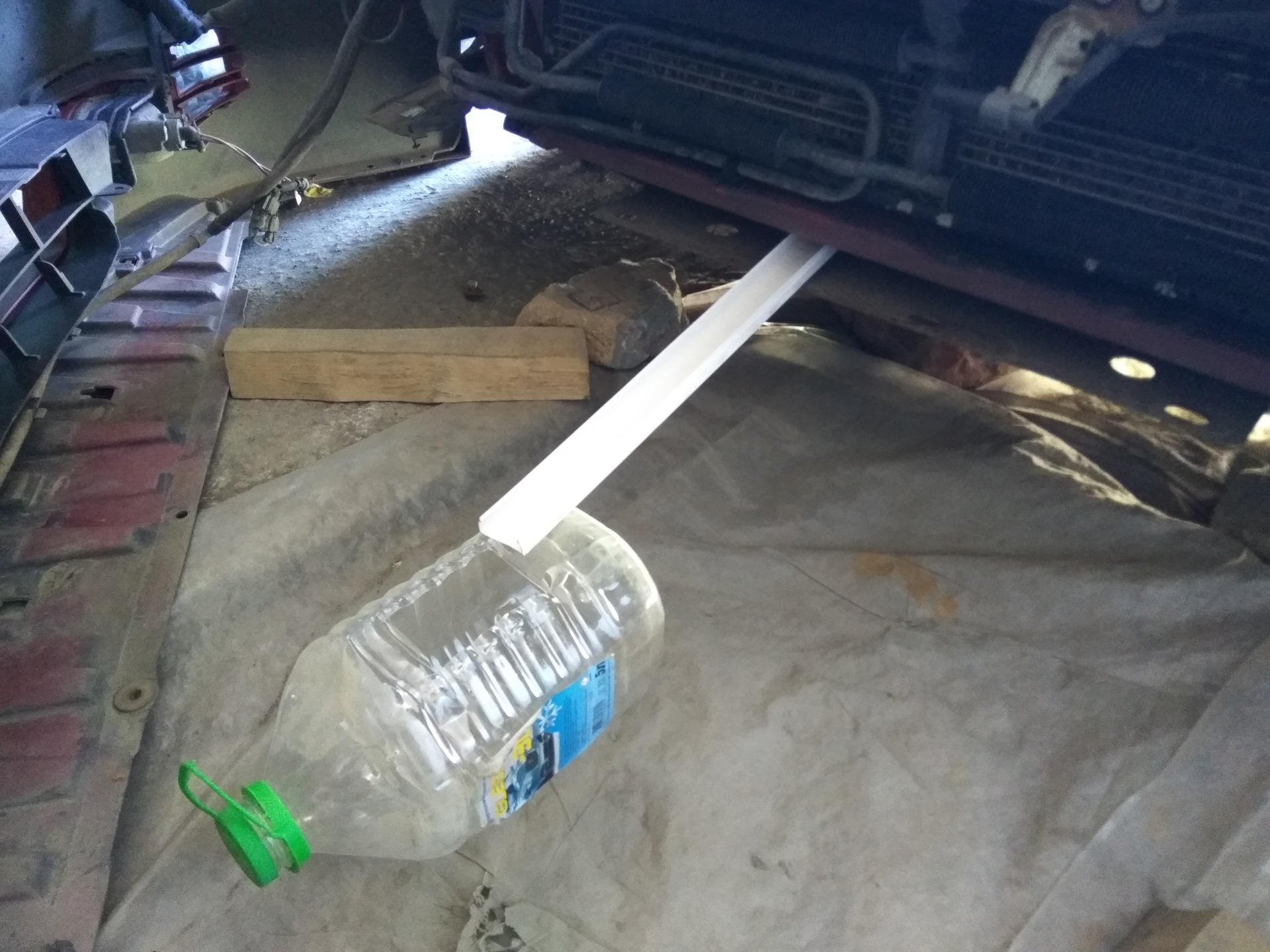 Ну вот и думаю все. Поехал покататься чтобы вышел пузырь, если вдруг он там образовался, да и просто проверить. Но подъехав к гаражу увидел что течет этот гребаный антифриз, быстро снял вентилятор подумав что может кранчик не докрутил, но бежало с нижнего правого угла. И понял я тогда, что промучился день просто так. Да и еще антифриз промотал. Поэтому поставил машину в гараж, подставил под нее бутылки, чтобы на пол не лилось и пошел смотреть цены на новые радиаторы.