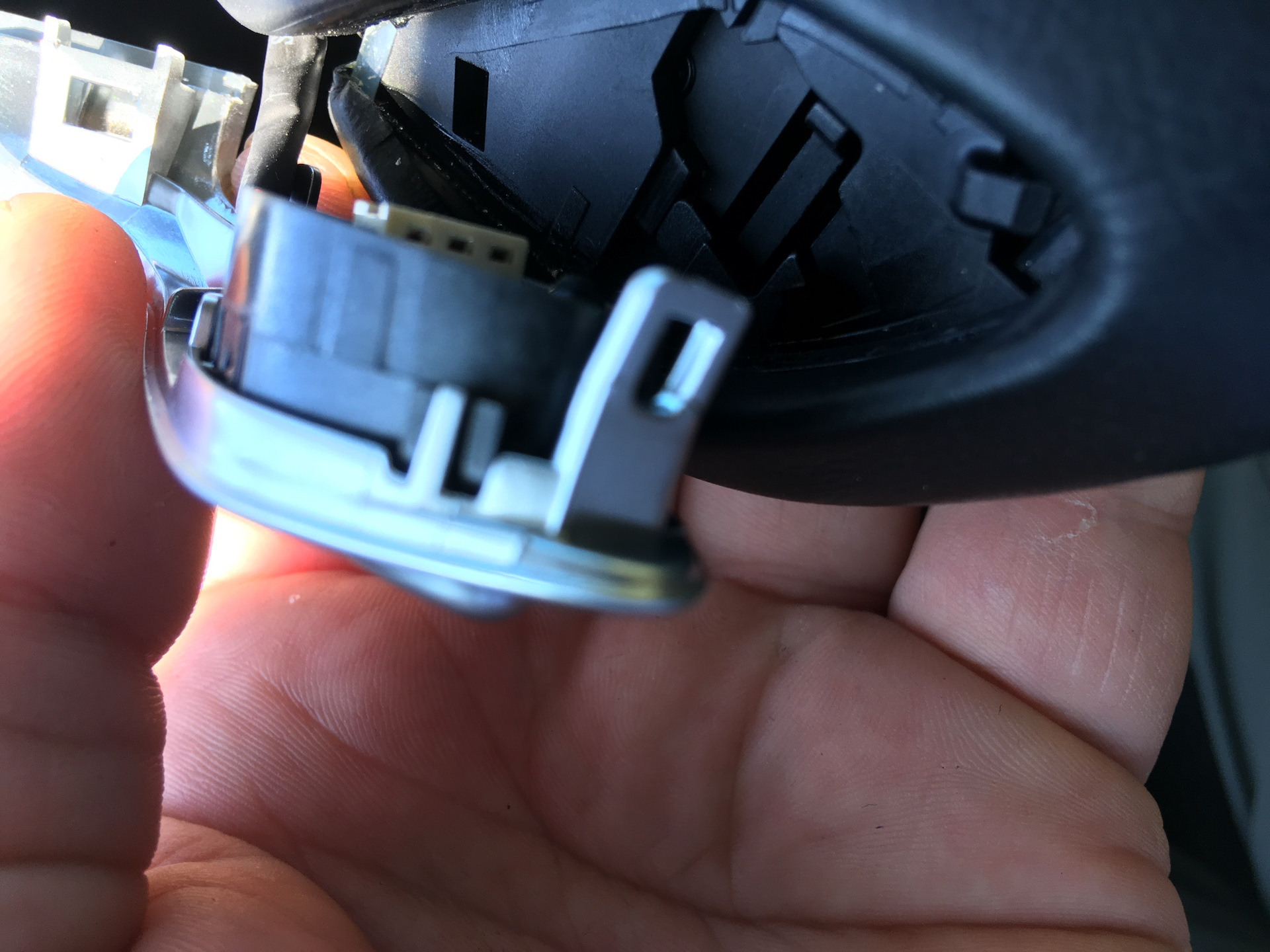 Снять накладки, открутить два винта в передней части(ручку переместить максимум на себя), отключить разъемы.