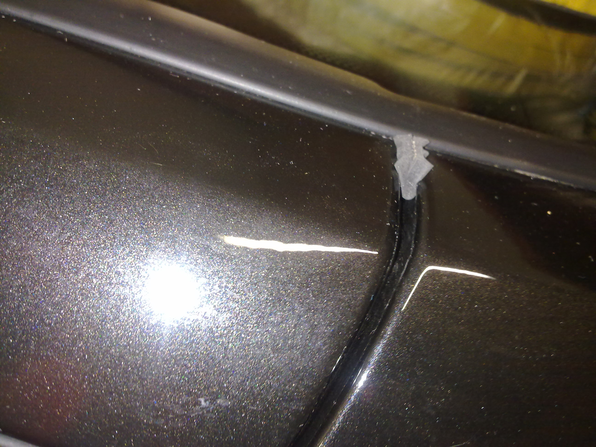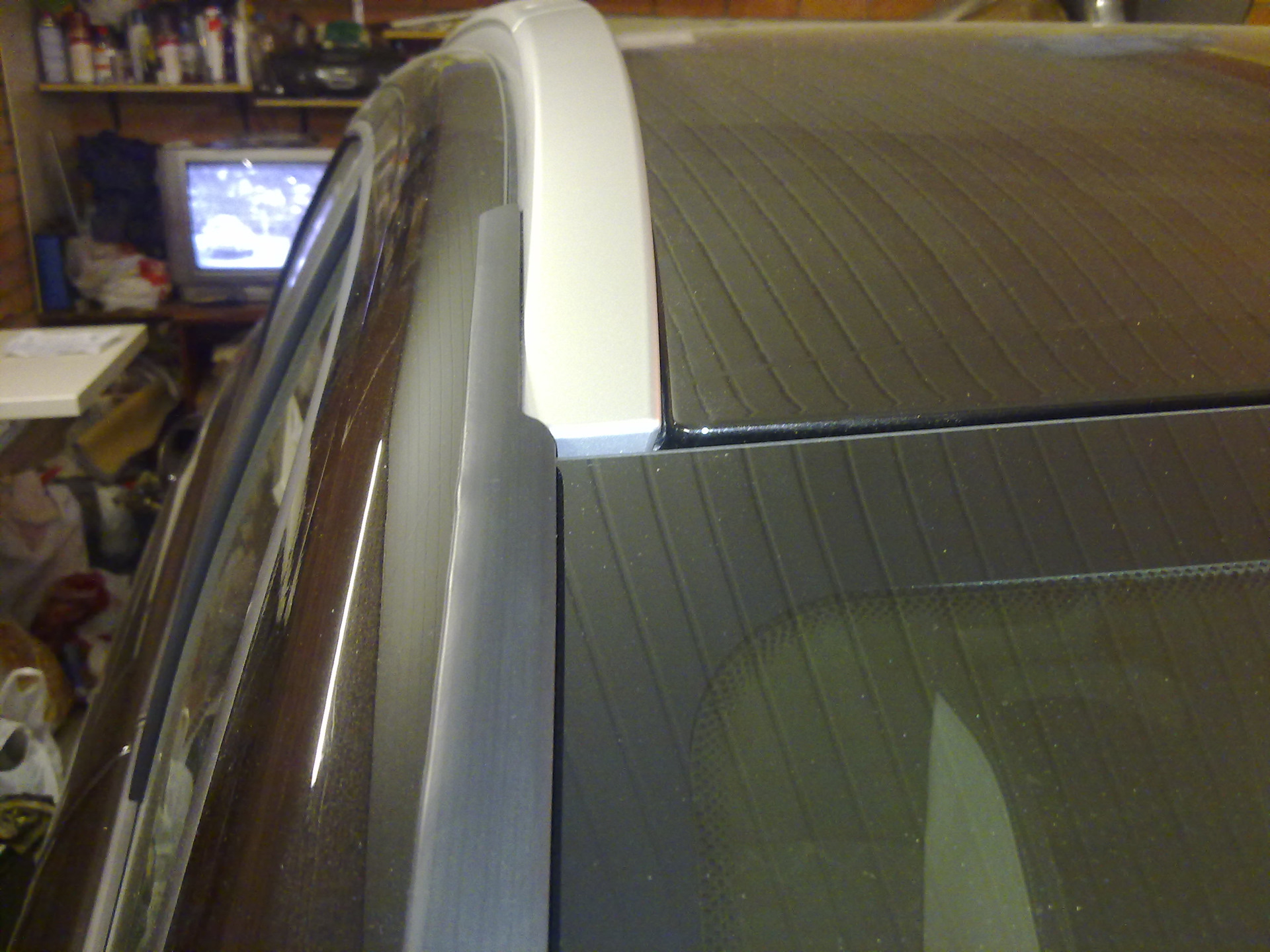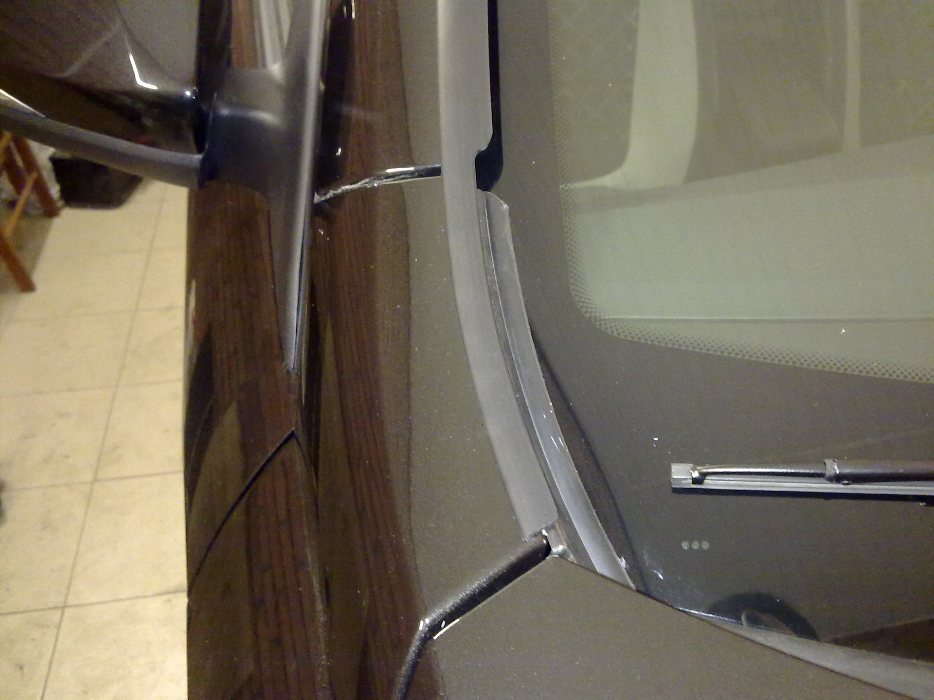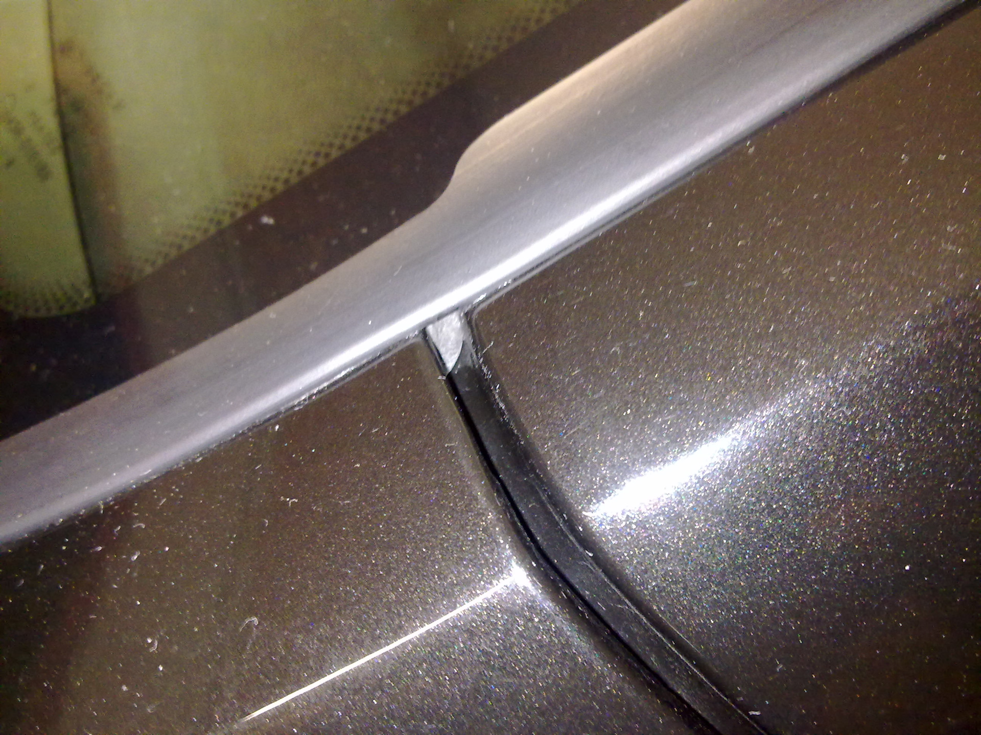 Даже если наклеить дефлекторы, то есть еще одна проблема: стык крыла и стойки лобового стекла. И даже с дефлекторами, хоть и в небольшом количестве, вода через эту щель (стык) просачивается и попадает на боковые стекла. Некоторые заполняют эту щель силиконовым герметиком. Я не стал так глобалить, взял самый мелкий оконный уплотнитель, отрезал кусочек около 3-х см длинной, сложил его пополам, тем самым приклеив этот уплотнитель сам к себе и вставил пинцетом уплотнитель в эту щель.