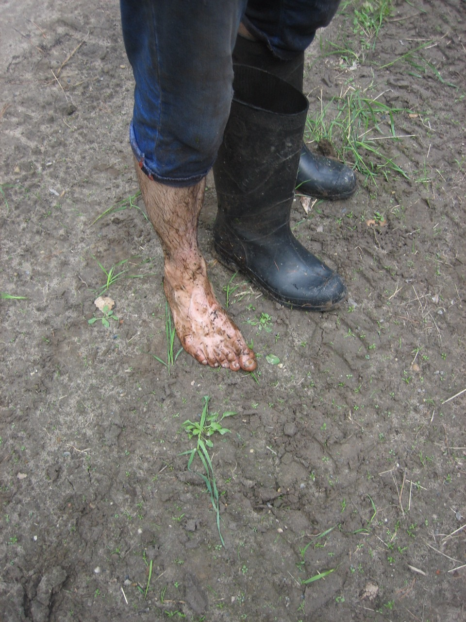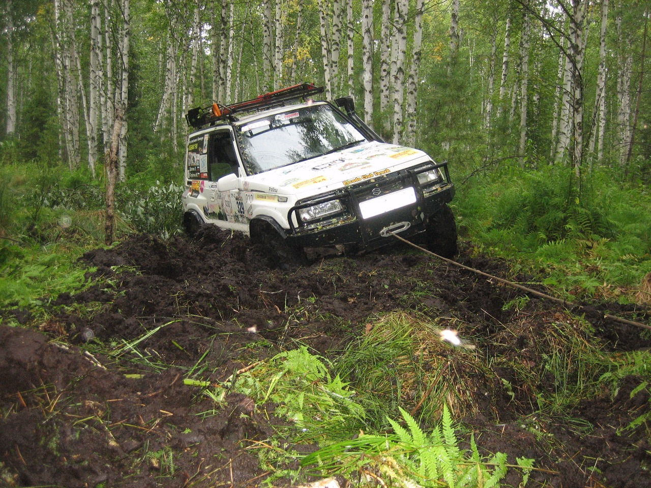И тут началась веселуха, в наших любимых традициях. Густая болотная грязька! Думаю тем кто первый ехал было легко. Пока не сорван верхний слой, там вполне все проезжабельно. Но мы ехали последними, к томуже не травленные ( а на данном грунте, это было очень надо). Травиться не стали изза того, что сосок на камере и так набекрень уже, т.е. вероятность разуться — очень велика. Сделали вывод — нетравленная Кобра по болоту едет хуже гудрича(. Режет и зарывается в грязь.