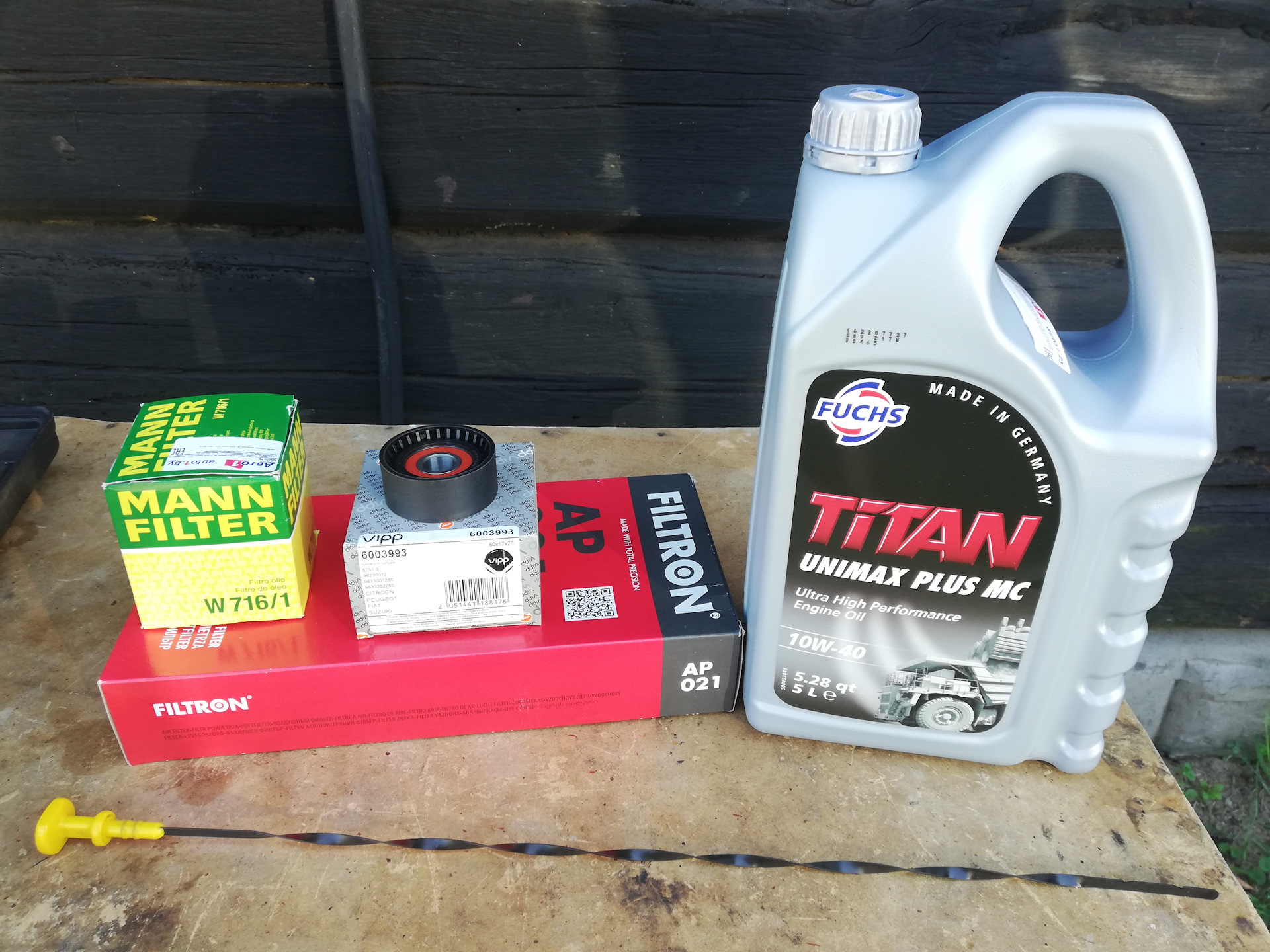 Также были заменены щуп маслоизмерительный, масляный и воздушный фильтры, обводной ролик ремня генератора, медная шайба под сливной пробкой (диаметр 14 мм).