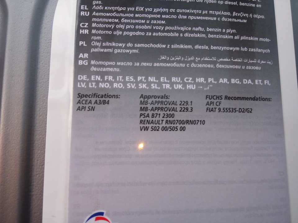 Масло отличное, прошлый раз заливал синтетику Fuchs Titan SuperSyn 5w40, за весь срок (порядка 8,5 тыс. км.) долил около литра. Посмотрим как эта полусинтетика себя покажет. Кстати Fuchs Titan Unimax plus mc 10w40 лучше подходит для зимних условий эксплуатации, температура застывания -39 C° против -30 C° у Fuchs Titan Syn mc 10w40.