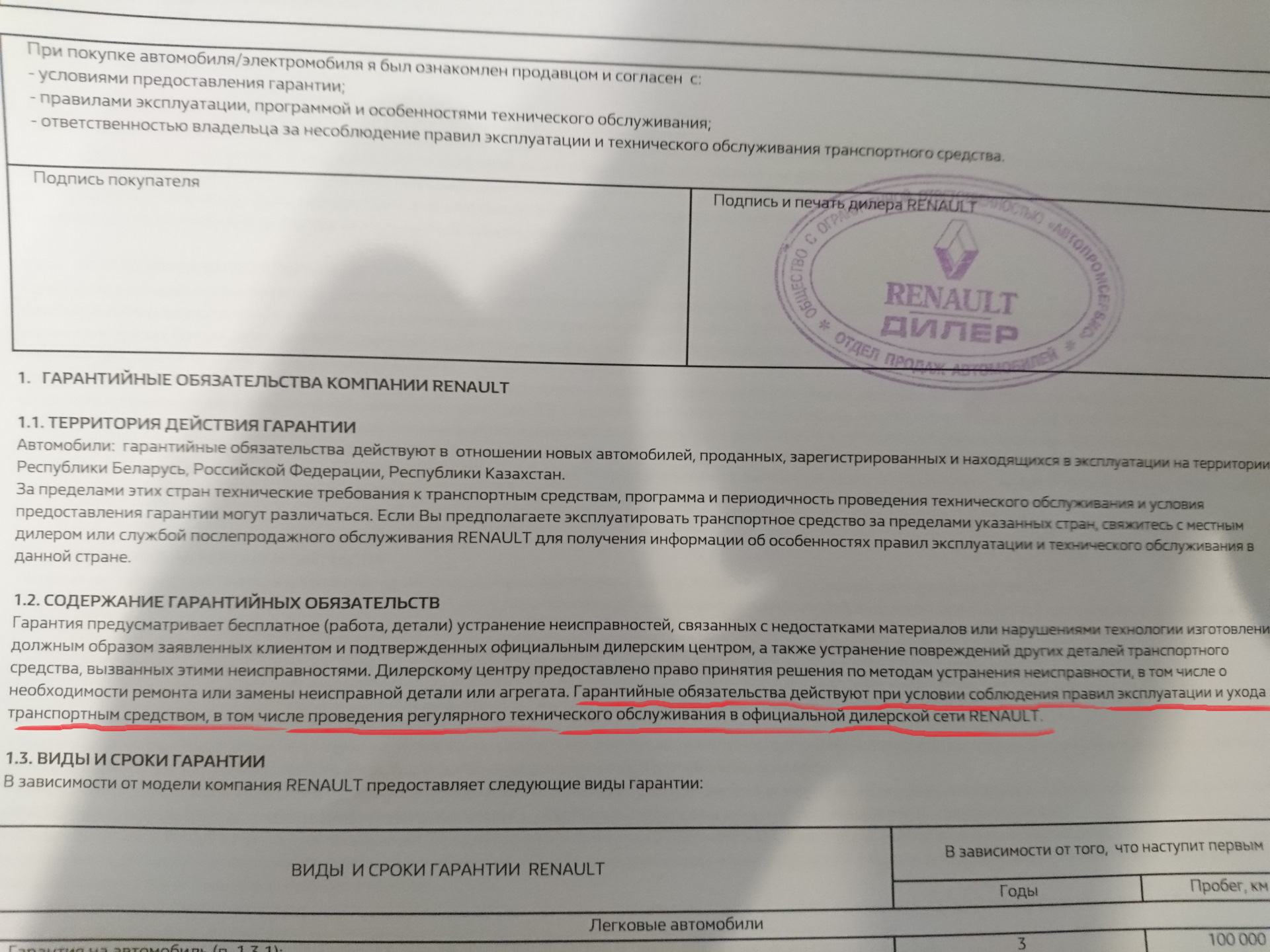 )))) Насмешил, еще раз повторю, гарантия на авто 3 года или 100к пробега и прохождение тут не причем, у каждго дилера подход свой