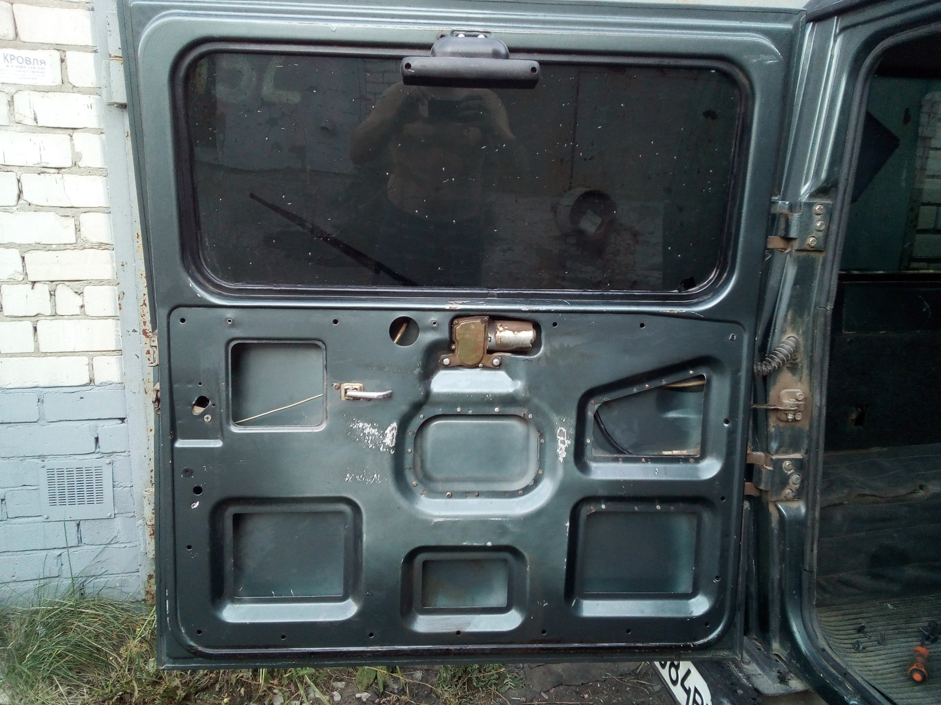 Но самая проблема — перевозить его негде, так как задняя дверь была в трещинах от запаски, вибрировала на ходу. Да ещё и самого кронштейна не было.
