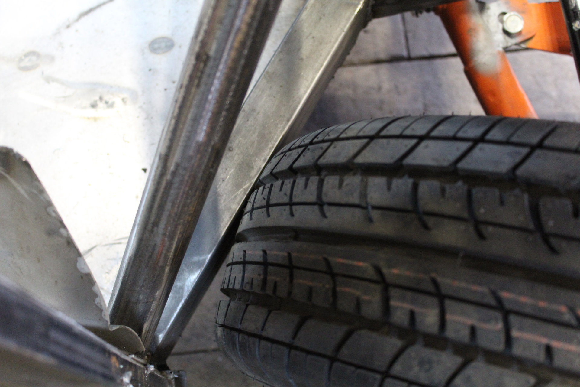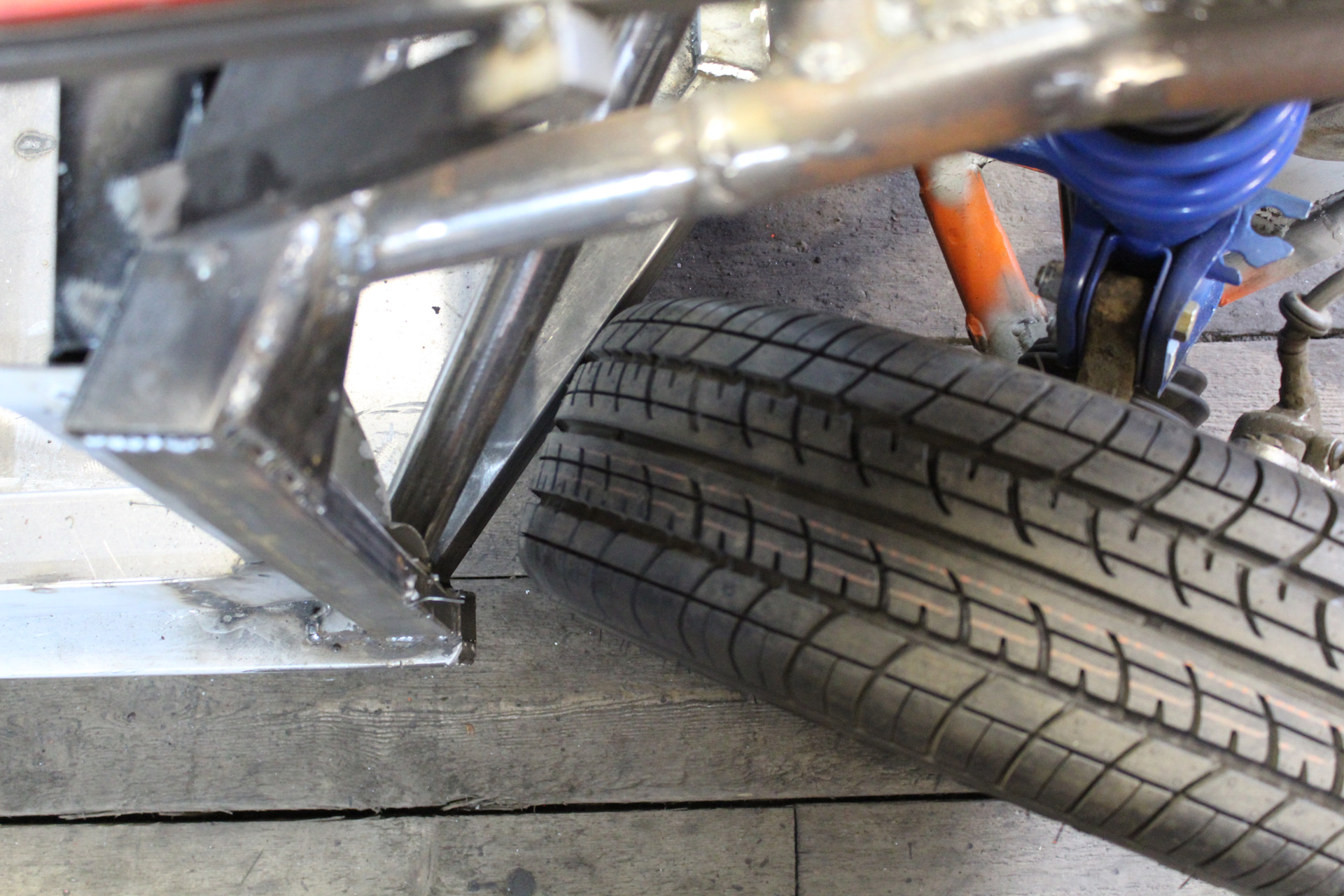 И при максимально вывернутых колесах, колеса (извиняюсь за повторение) упираются все таки в раму. Придется переделывать ее уже во 2 раз в этом месте.