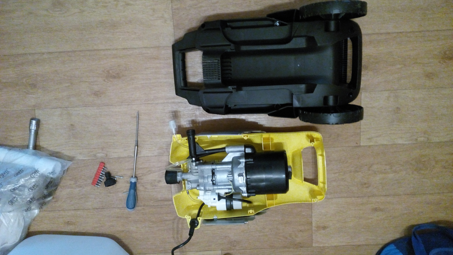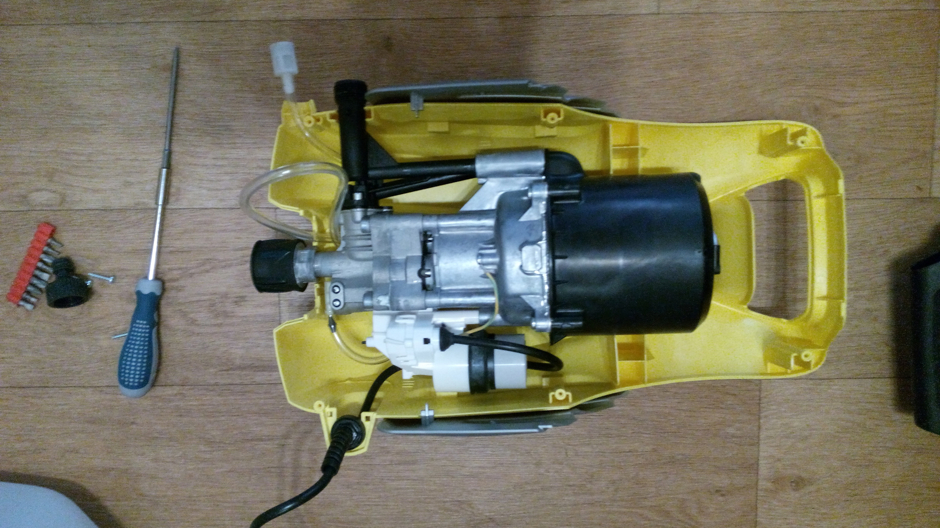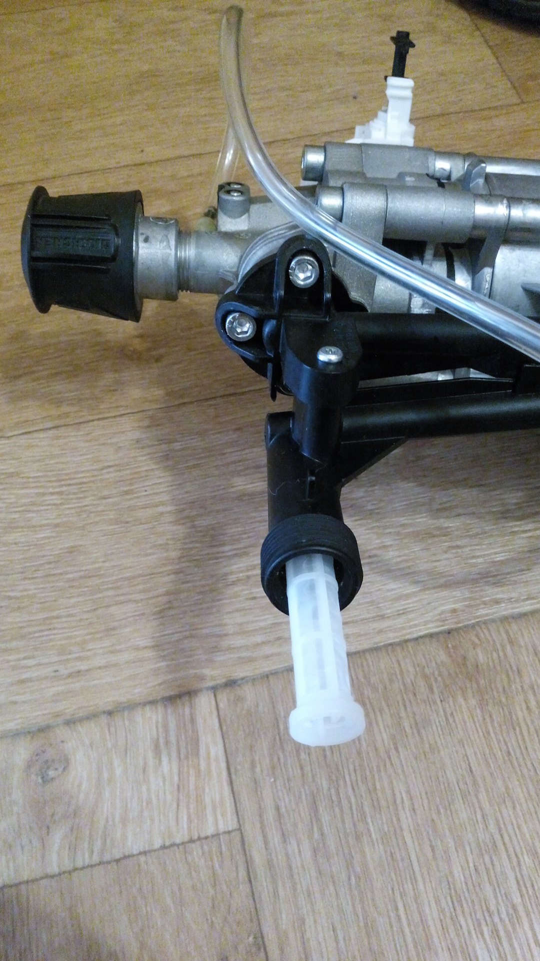 После этой маленькой победы решил все-таки вытащить и смазать силиконовой смазкой байпасный клапан мойки. Для этого разобрал аппарат.