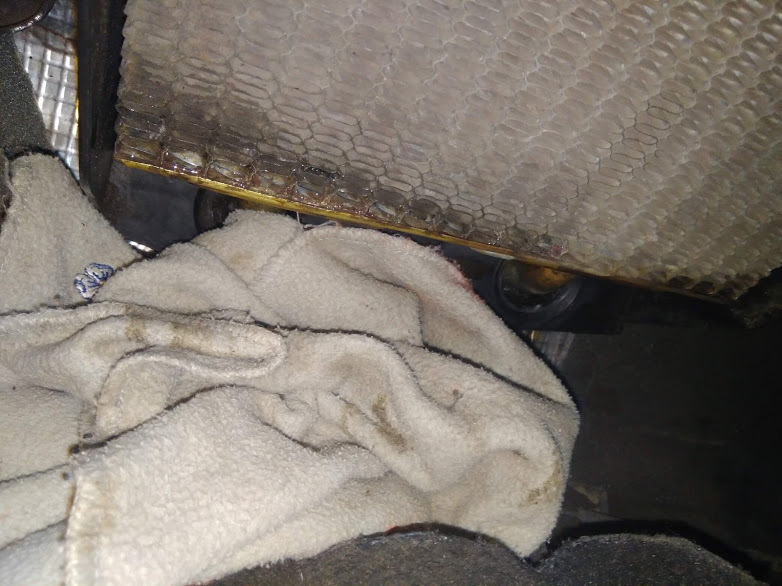 Всем привет, для начала хотелось бы сказать . Собрал проводку наконец-то, решил выехать так казать протестить, заодно заехал на мойку, оценил как будет вода заливать дверные разьемы. Жгуты проводов как по стоку замотал изолентой, вроде и не плохо, но надо как-то улучшать, герметизировать. На подъезде в гараж, услышал запах антифриза, и далее уже с под капота пошел легкий дым. Была пережата пробка расширительного, стравливал давляк долго, ну и слабое место стало соединение патрубков радиатора печки, поджал хомуты, в салоне разобрал корпус проверить состяние радиатора и опечалился,