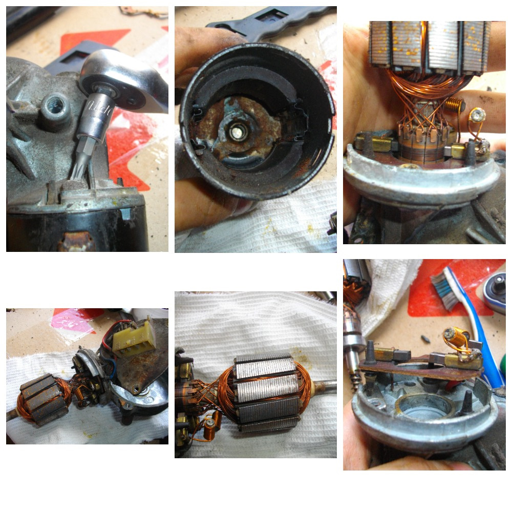 11. Вынимаем ротор, чистим, проверяем состояние подшипника, если надо меняем его. Так как на новой трапеции был моторчик, но под другую фишку, я его разобрал и перекинул плату со щетками и ротором, так как на моем подшипник был похуже.