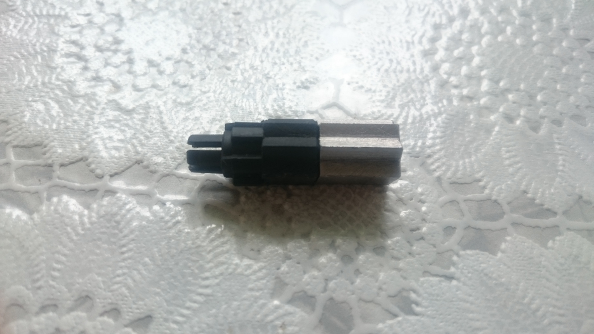 Причина поломки заключается в том, что шестерня привода разбивает посадочное место в заслонке. После поиска вариантов устранения неполадки, был выбран наименее разрушительный способ — удлиннение шестерни привода. Удлиннитель был выточен на заводе по знакомству. Чертеж не составлялся, общая длинна удлиннителя с родной шестерней составила 20 мм.