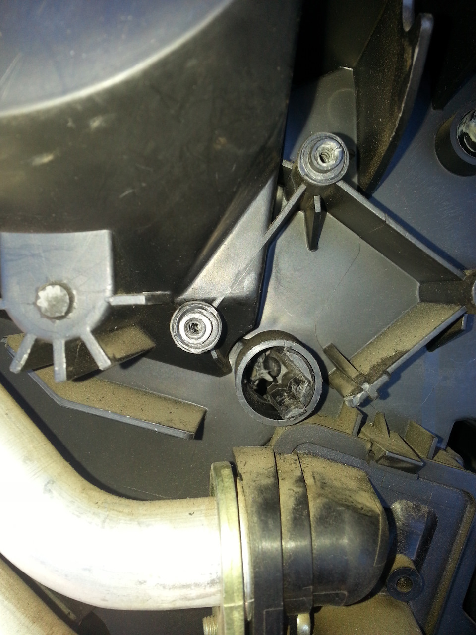 6. Злясь, матерясь, проклиная создателей этого автомобиля и всю французскую нацию в целом, исцарапывая руки и выгибая пальцы во всех мыслимых и немыслимых направлениях, отворачиваем три самореза, используя все подходящие инструменты: головку на 6, накидной ключик на 6, удлиннители разной длинны, в том числе гибкий.