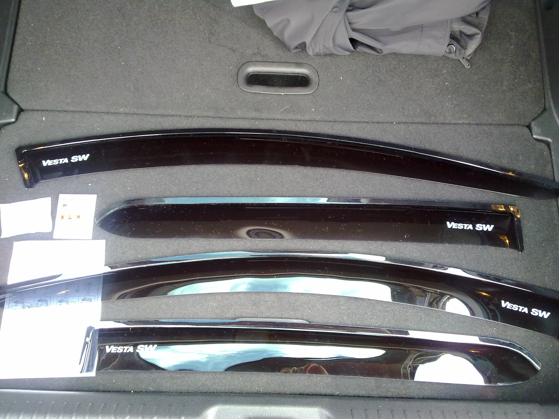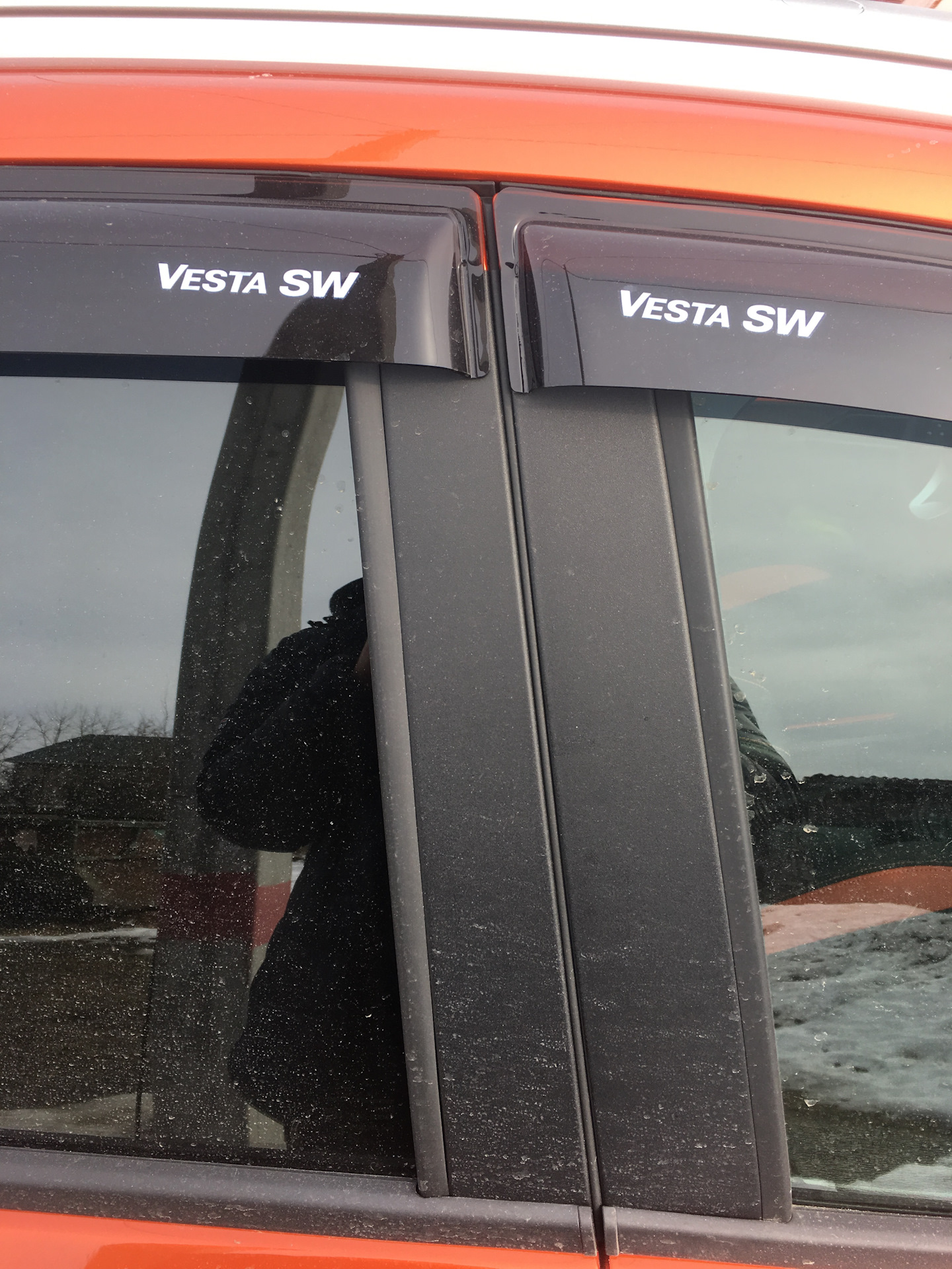 Когда заказал ветровики, считал что раз они "родные", то качество отливки и пластика будут на "высшем" уровне. По факту — это обычные ветровики только с надписью "Vesta SW". Ни чуть не лучше чем мои "Cobra Tuning" на приоре. И отдавать за них больше чем заплатил я не имеет ни какого смысла, можно заказать на автодоке "Vinguru", примерно за эти же деньги. Ну и если уж совсем придираться, то стык ветровиков между передней и задней дверью не ровный. Ну это уже придирки и издалека не видно.