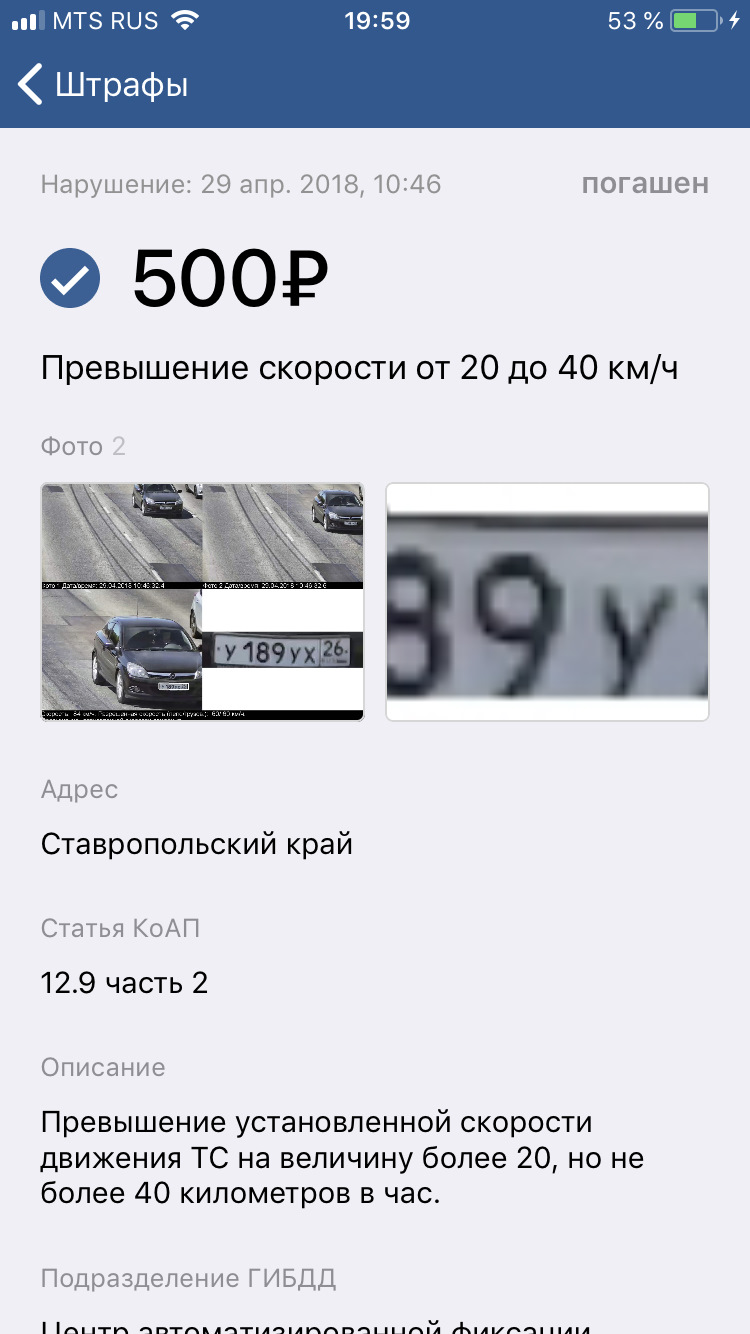 Здарова, вобщем суть такая, в конце апреля пролетел под камерой, заработал небольшой штраф, но так как на телефоне установлено приложение, как только вынесли постановление, оповещение пришло сразу же, поэтому я без каких либо проблем оплатил штраф за 250₽ но…