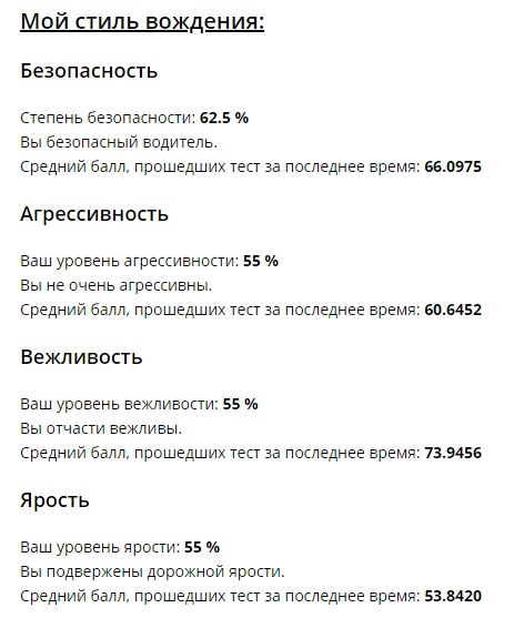 Впринципе всё так и есть, тест 90 процентов подтверждает мой стиль вождения.