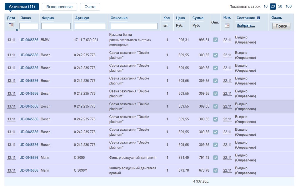 Заказаны были свечки фирмы Bosch, на Exist.ru, как обычно все пришло быстро и качественно