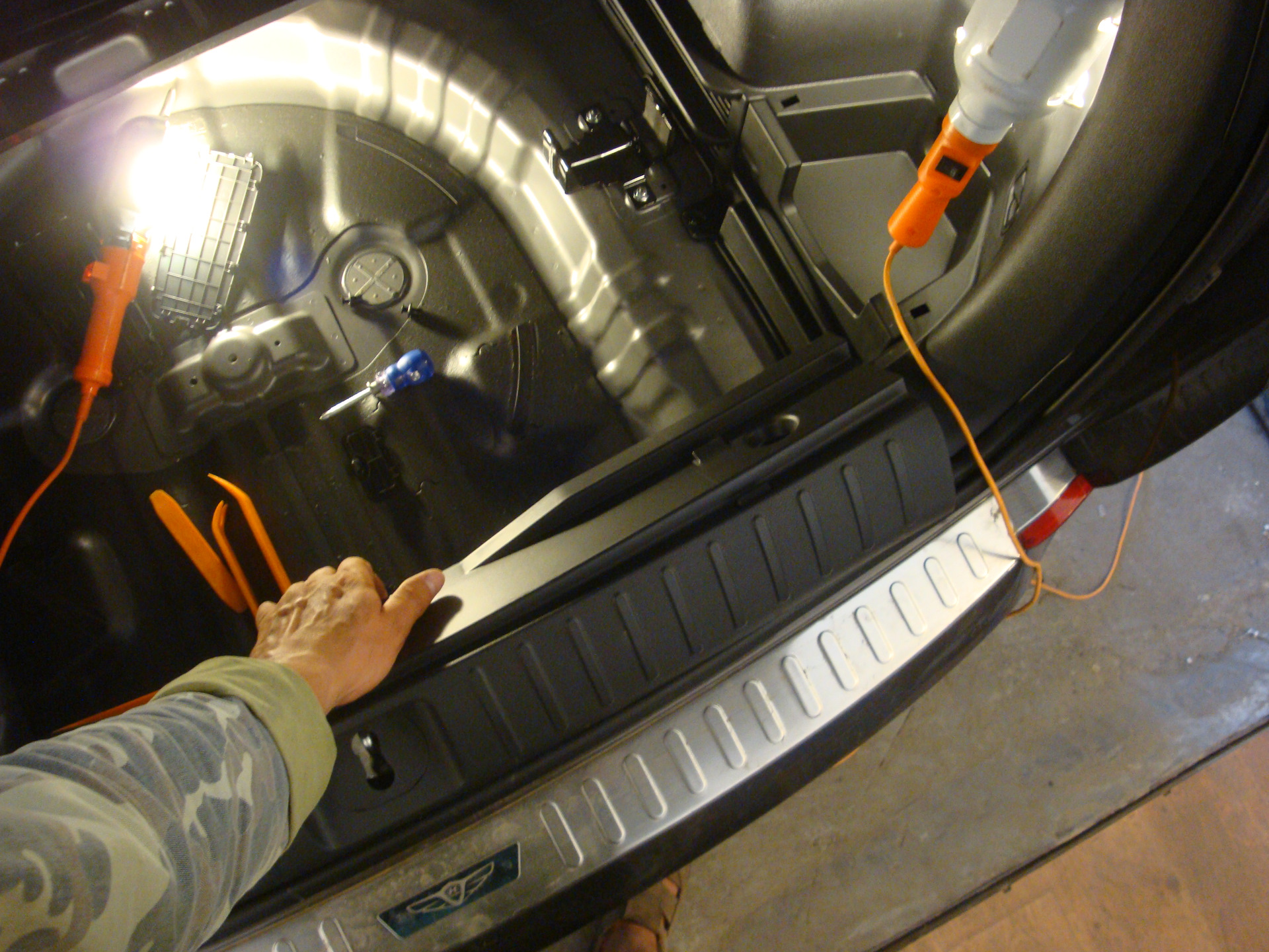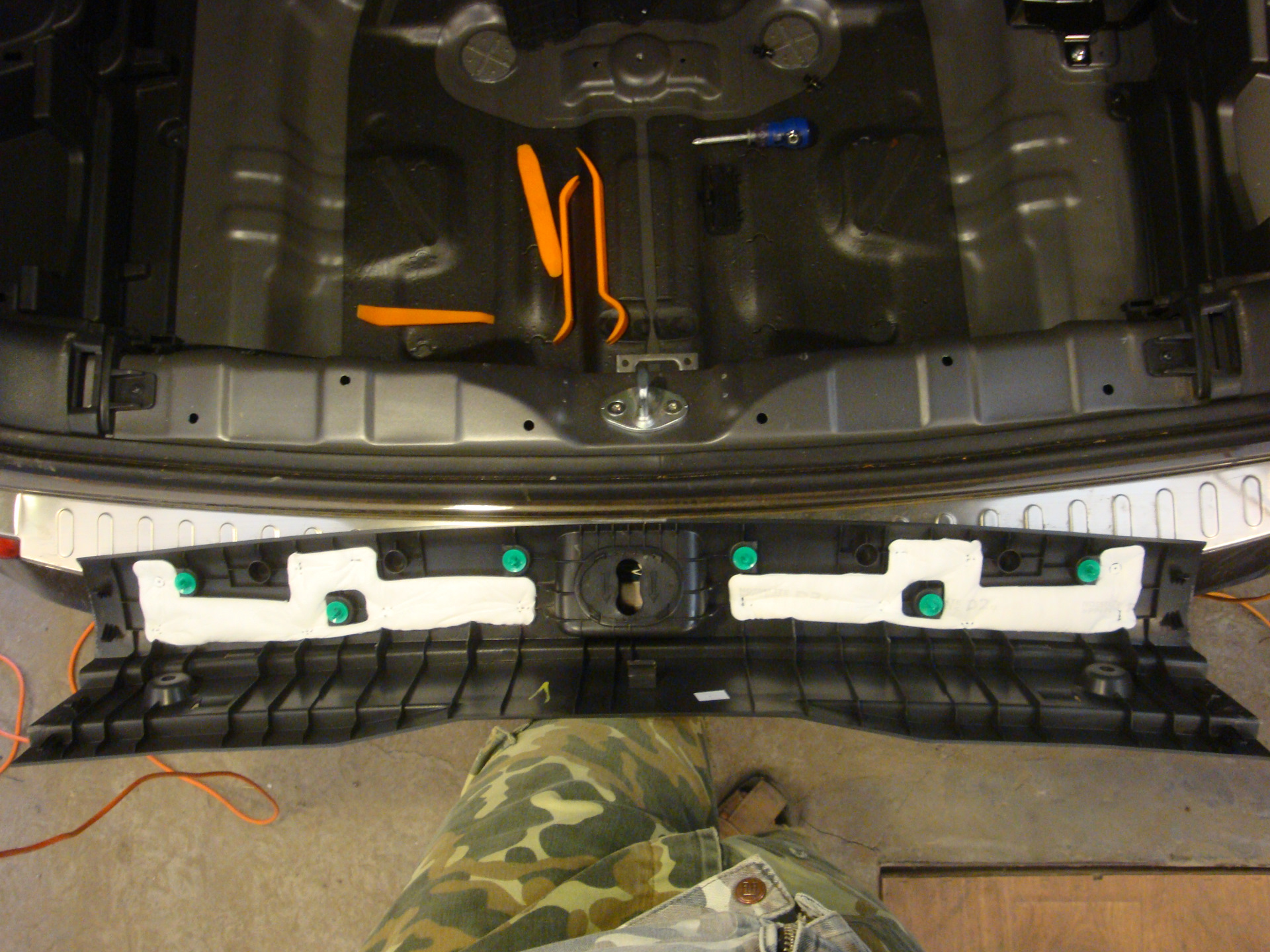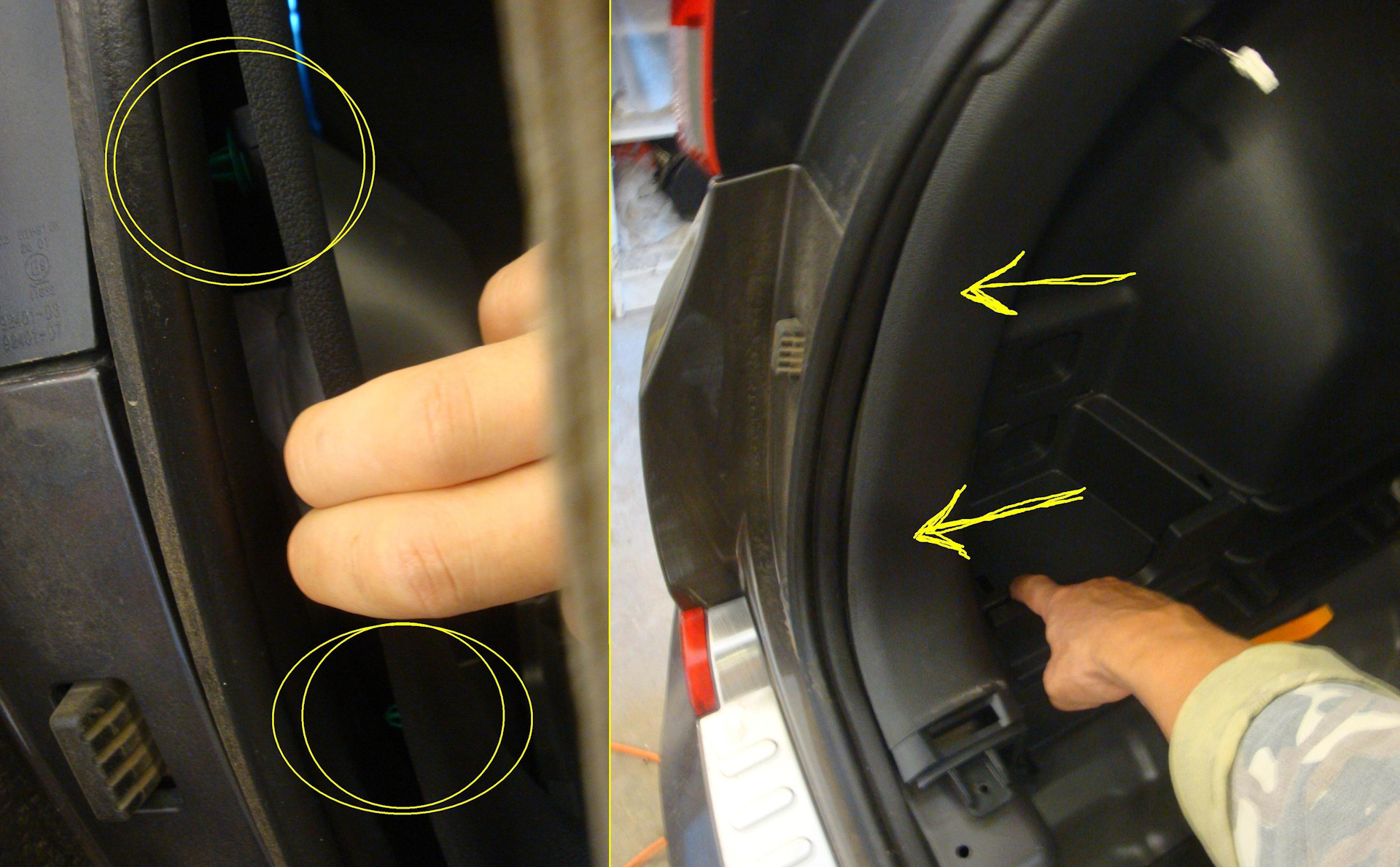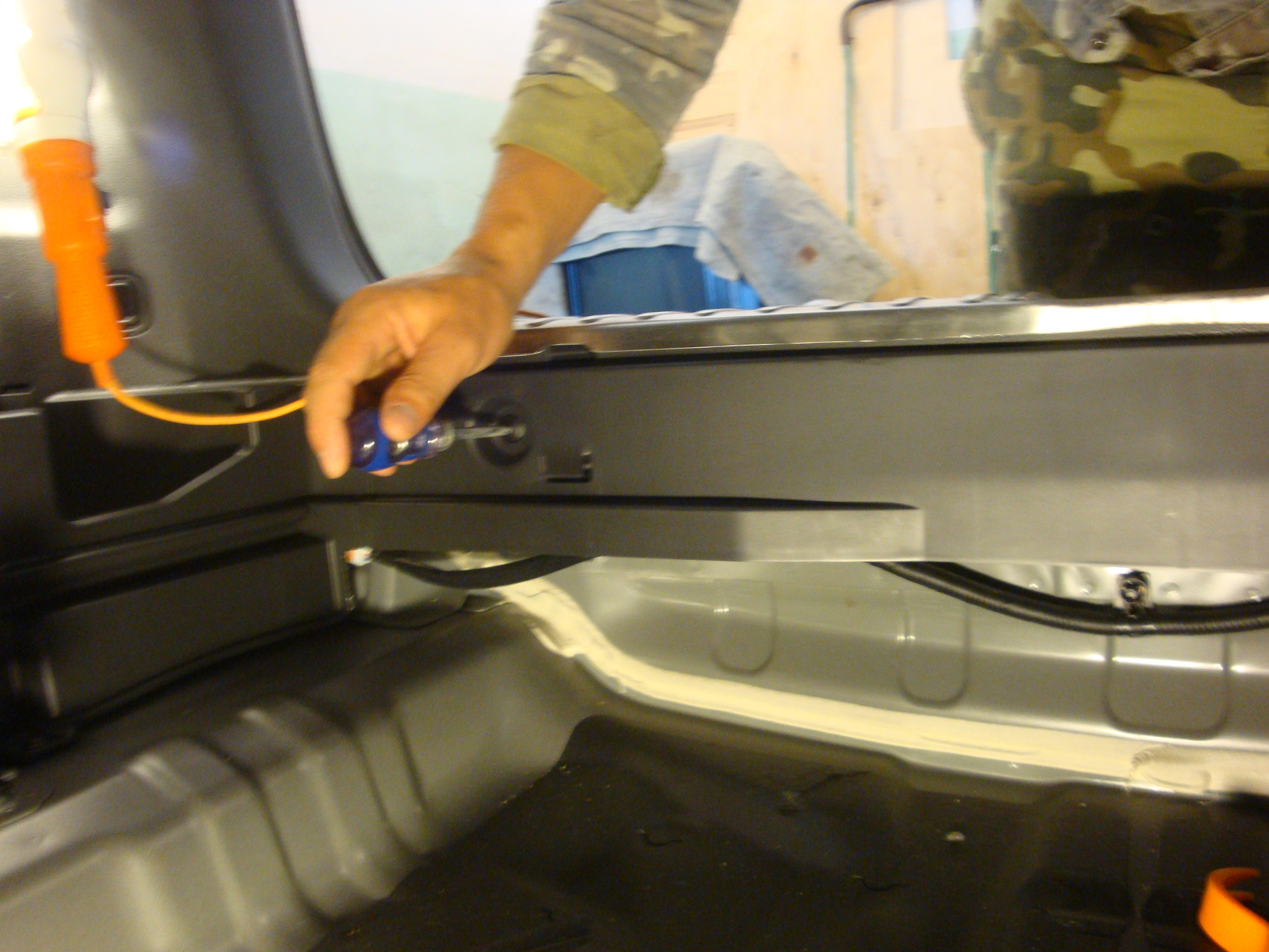 Для снятия порога багажника нужно выкрутить две пластиковые клипсы с внутренней стороны багажного отделения.