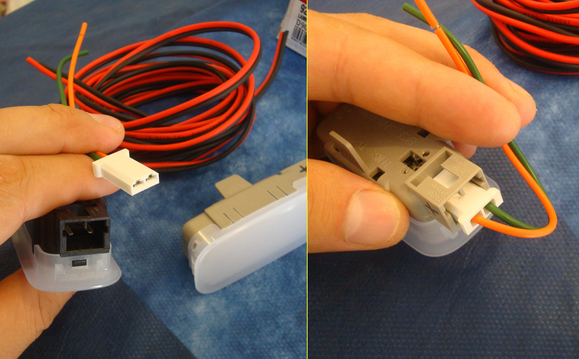 Протянул провод ко второму плафону, так же отгибал боковую панель, припаял разъём и подключил плафон.