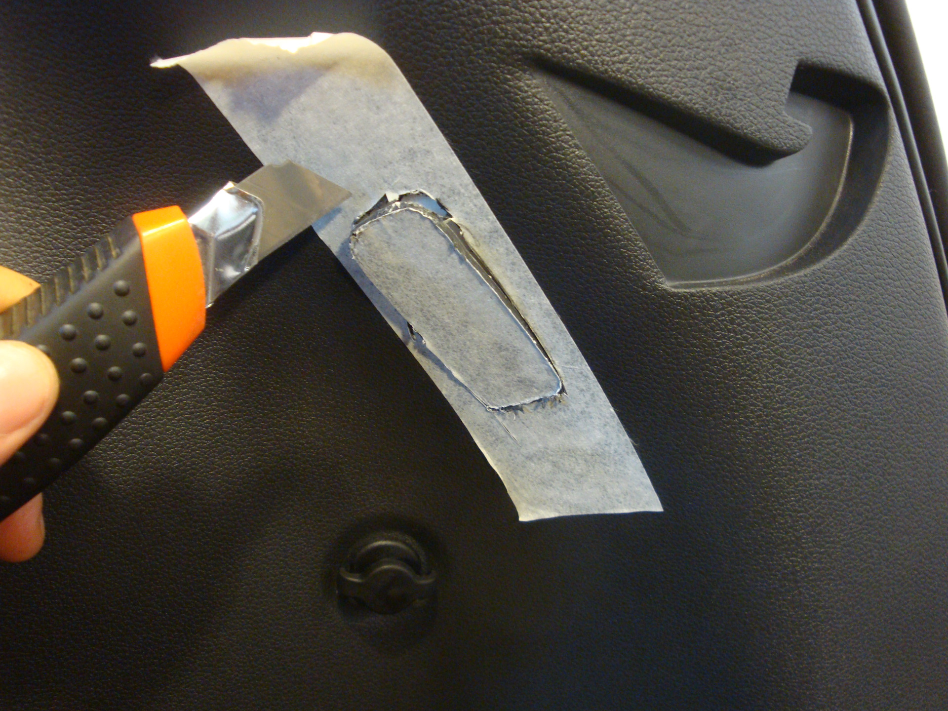 Как в подсмотренных постах использую малярный скотч: наклеил на проём штатного фонаря и обвёл его контур.