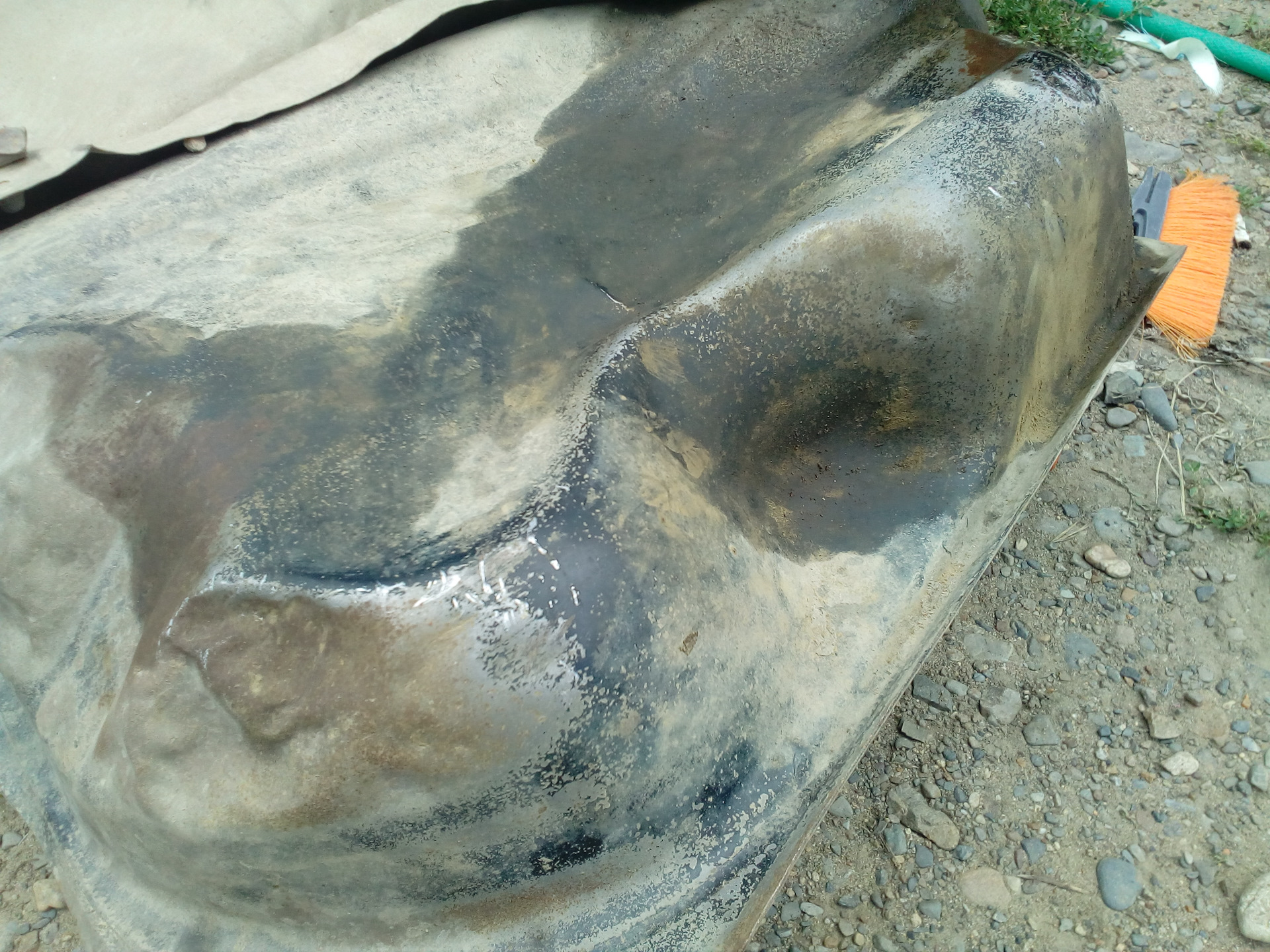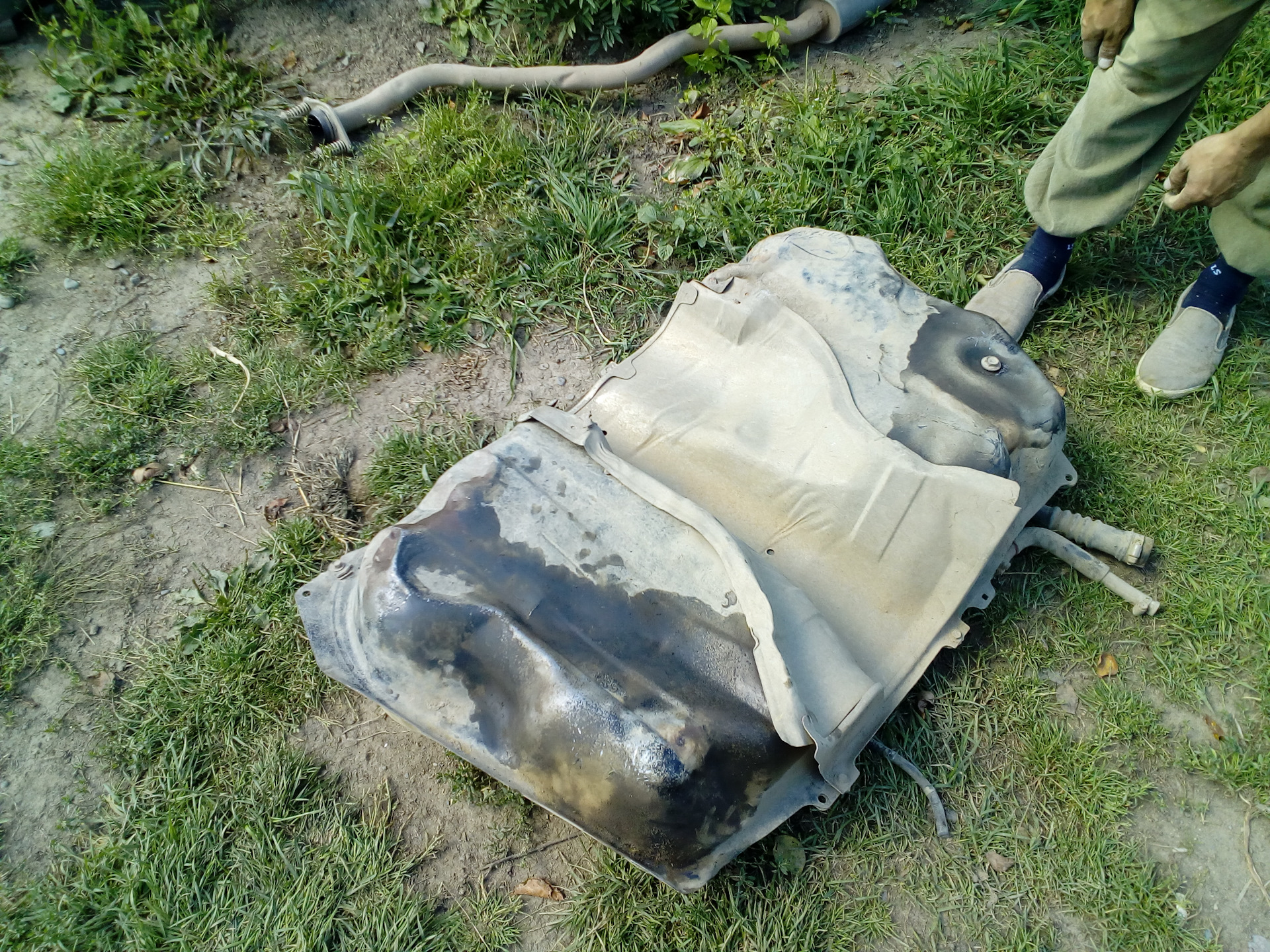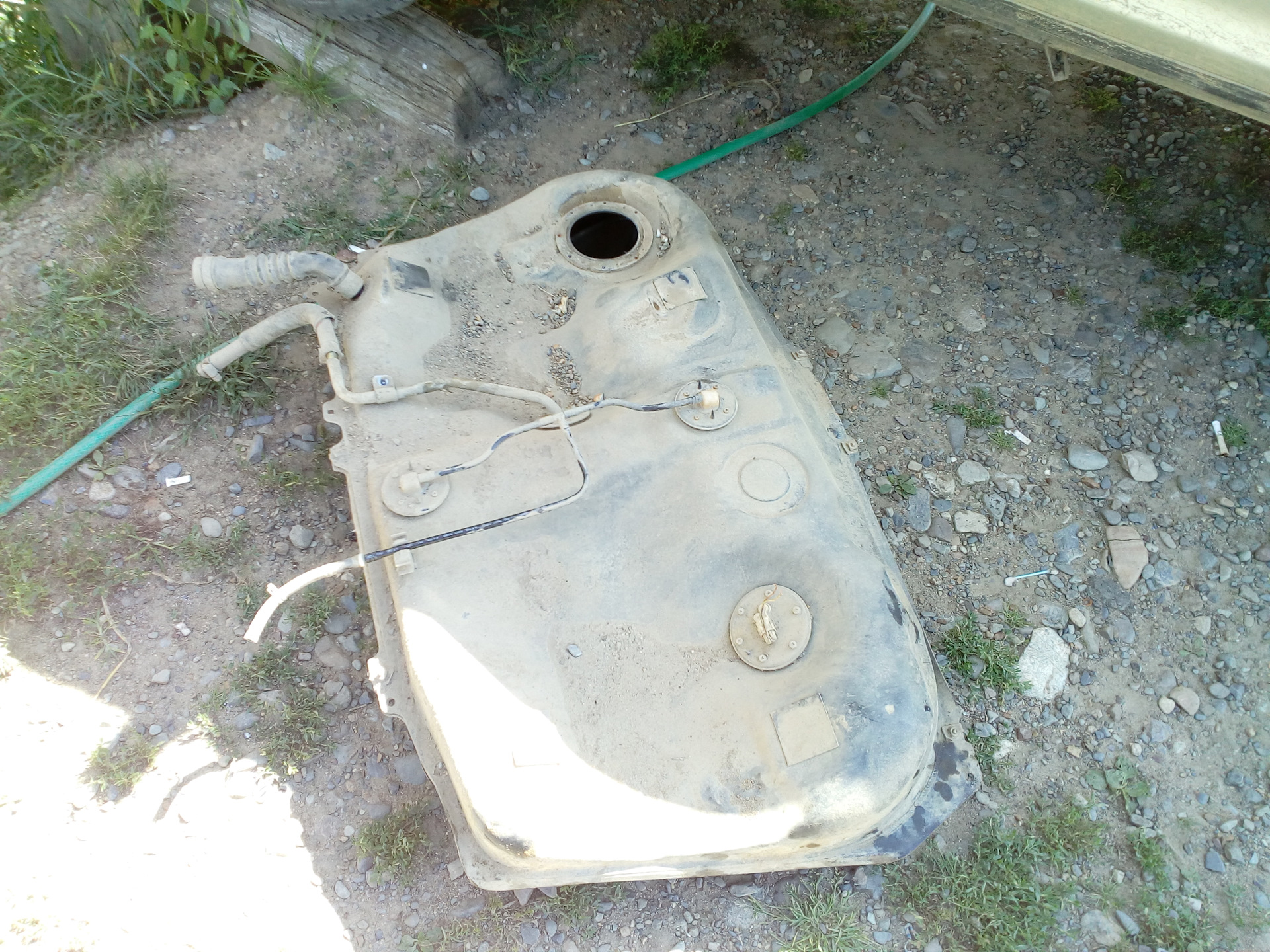 Когда я только приобрел Красавца, при осмотре все было хорошо, единственное на, что я обратил внимание тогда, что был вмятый бак с двух сторон, но так как все остальное днище автомобиля было можно сказать на отлично, короче я даже не обратил внимание, ну значит, старый хозяин где то вмял.
