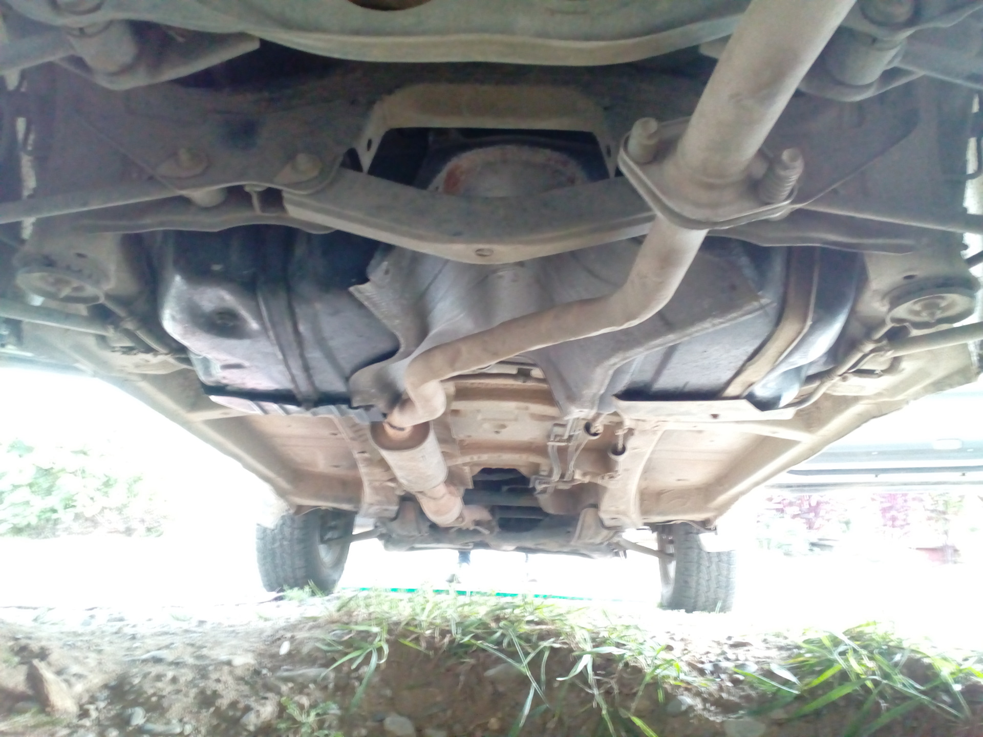 Далее под низ, откручиваем все, что мешает баку, глушитель, задние распорки, крепления там все видно, ничего сложного .