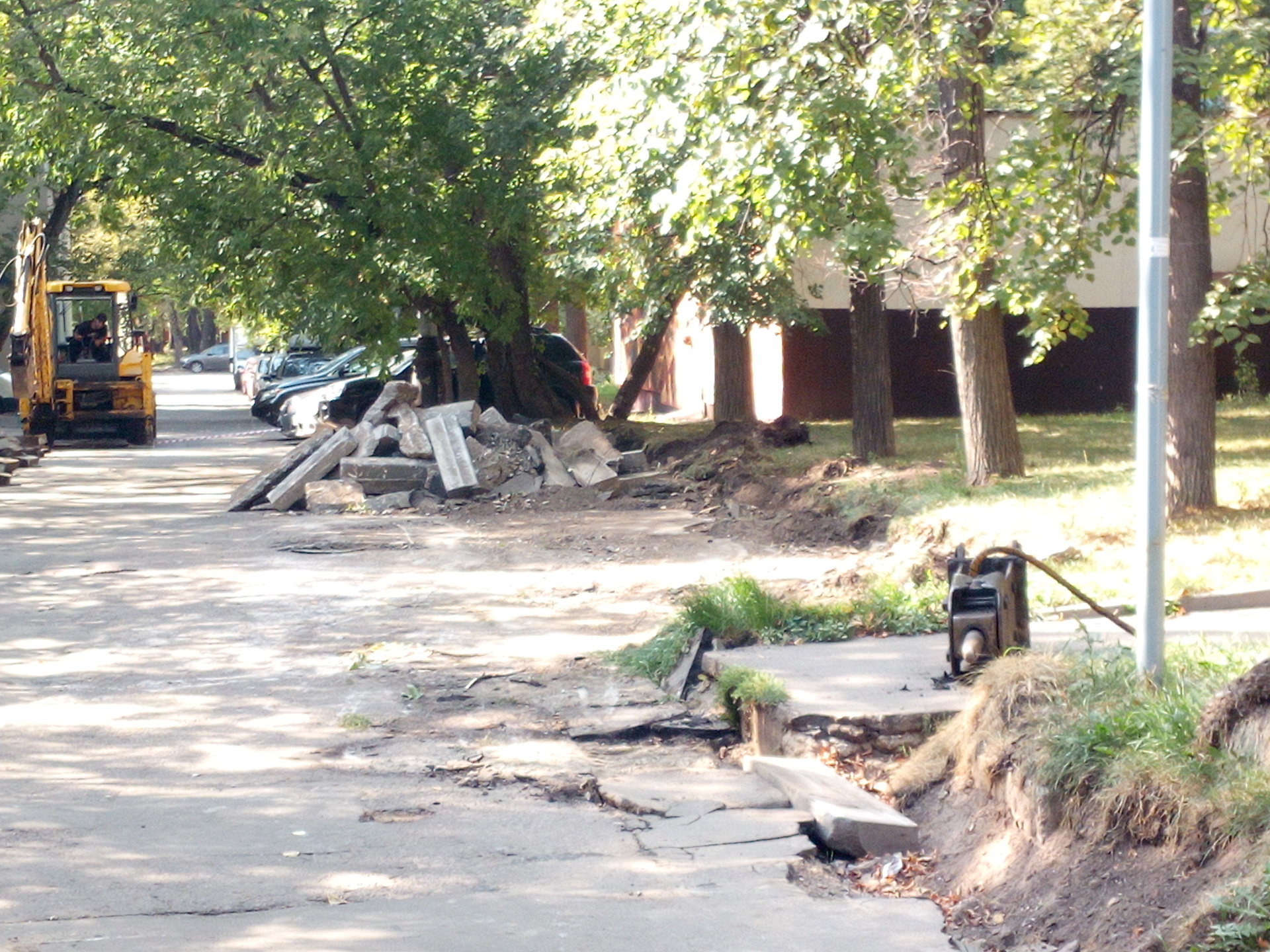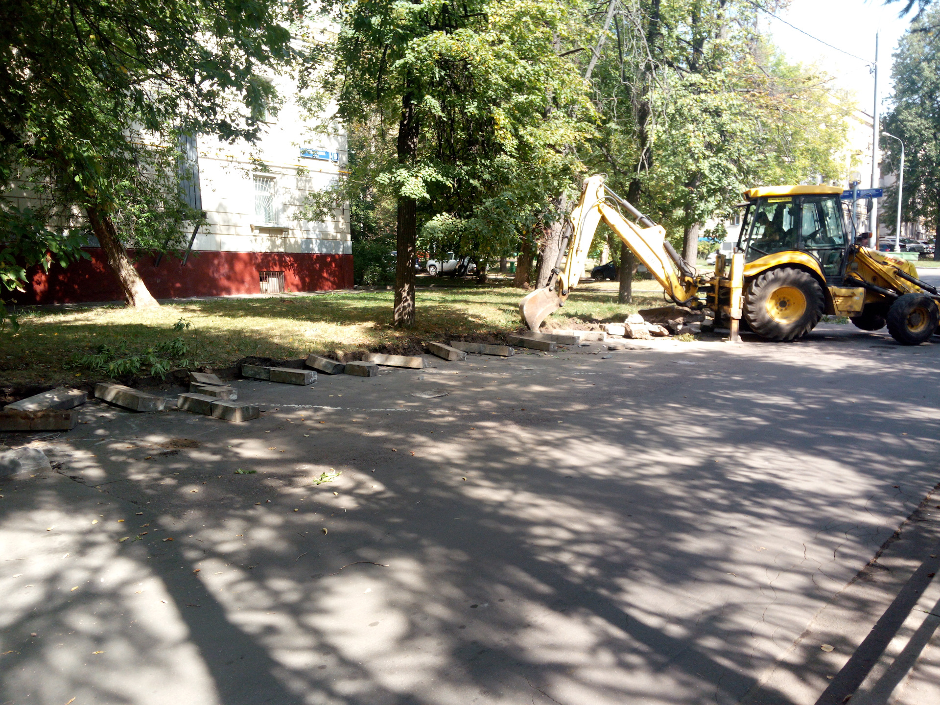 Ребята работают, полдвора уже новым камнем бордюрный уложили, правда, новый тоже со сколами)) ну ничего, пару лет продержится)) асфальт новый положили поверх прошлогоднего, ща он осядет и все ямы вновь всплывут))