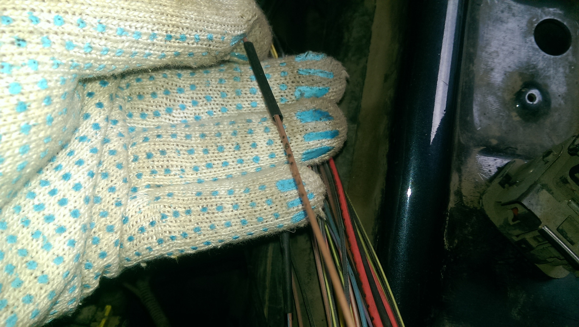 Отсюда начал мотать тряпичной изолентой, купленной в ближайшем автомагазине, замотал так же провода на фишку концевика заднего хода