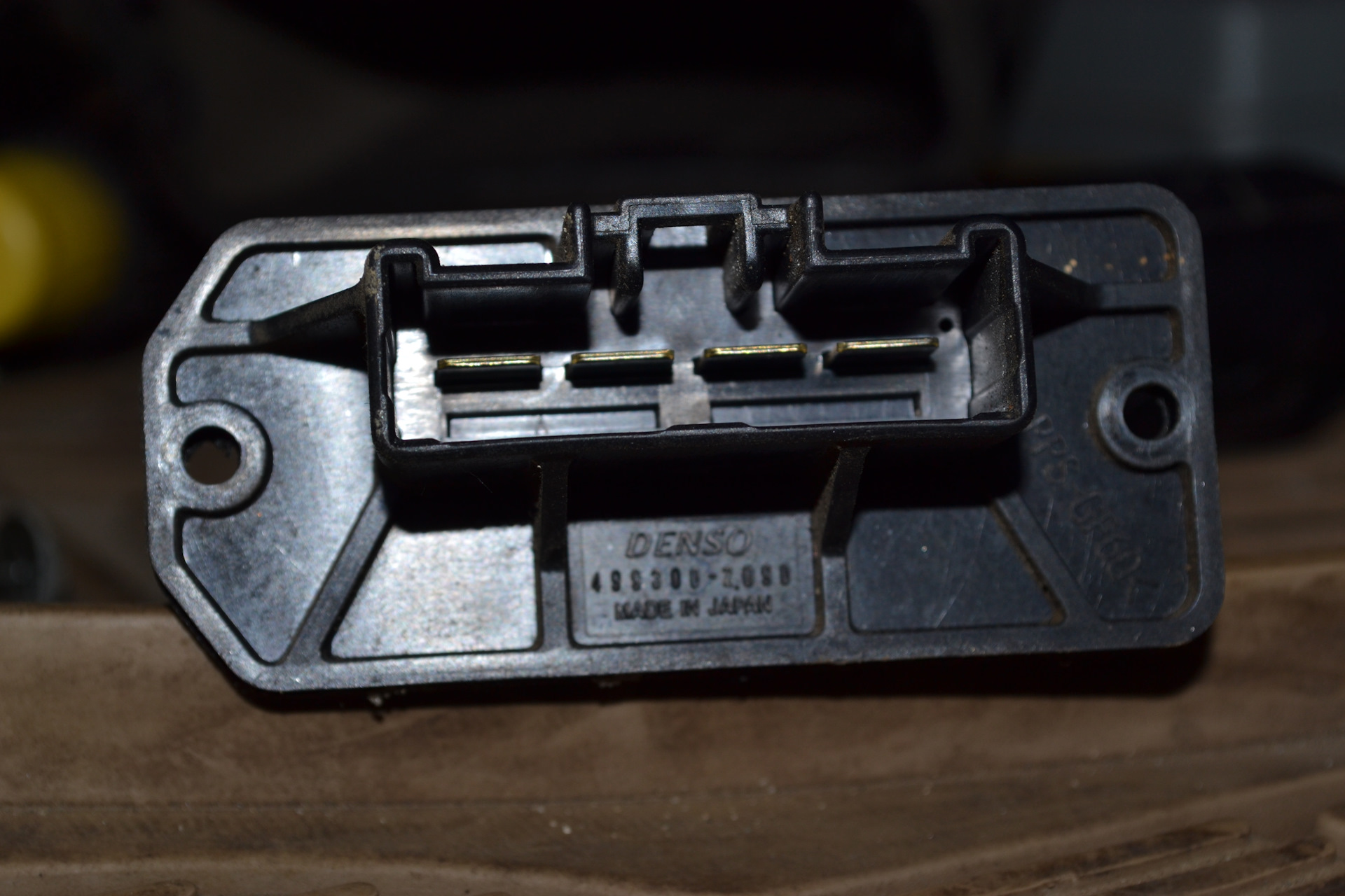 Далее открутил реостат печки. Держится на двух саморезах. В его посадочной отверстие открывается прекрасный вид на засранные соты радиатора.