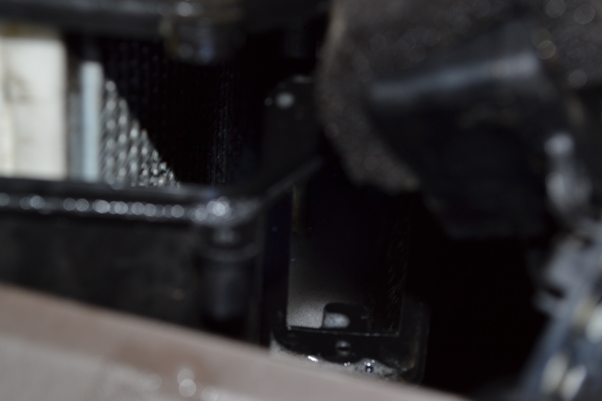 В общем, победив этот крепеж я приспустил кожух и распер его торцом отвертки. Образовался доступ к радиатору, которого нельзя добиться из других отверстий.