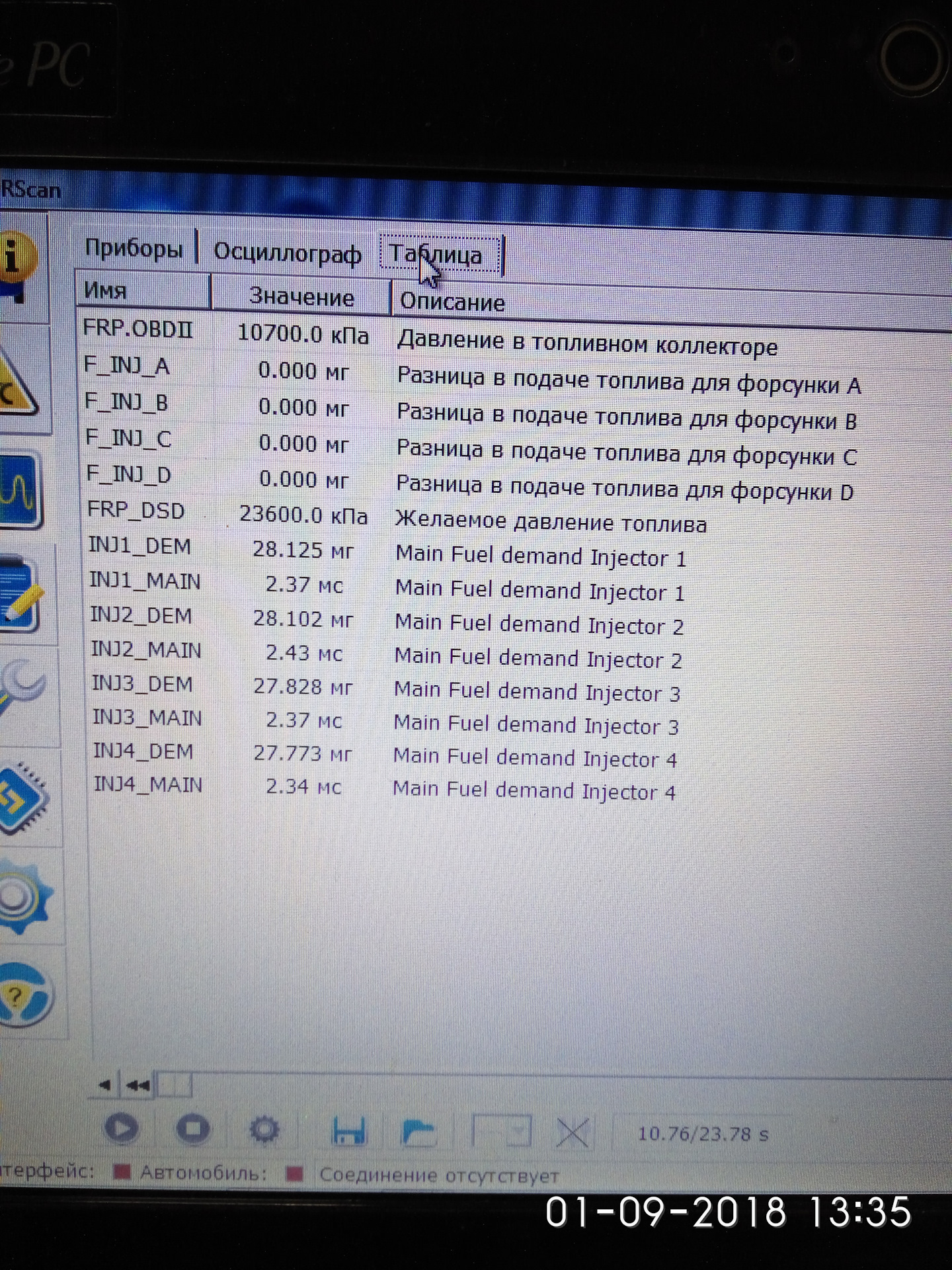 Вот что в этот момент зарегистрировано Forscanom