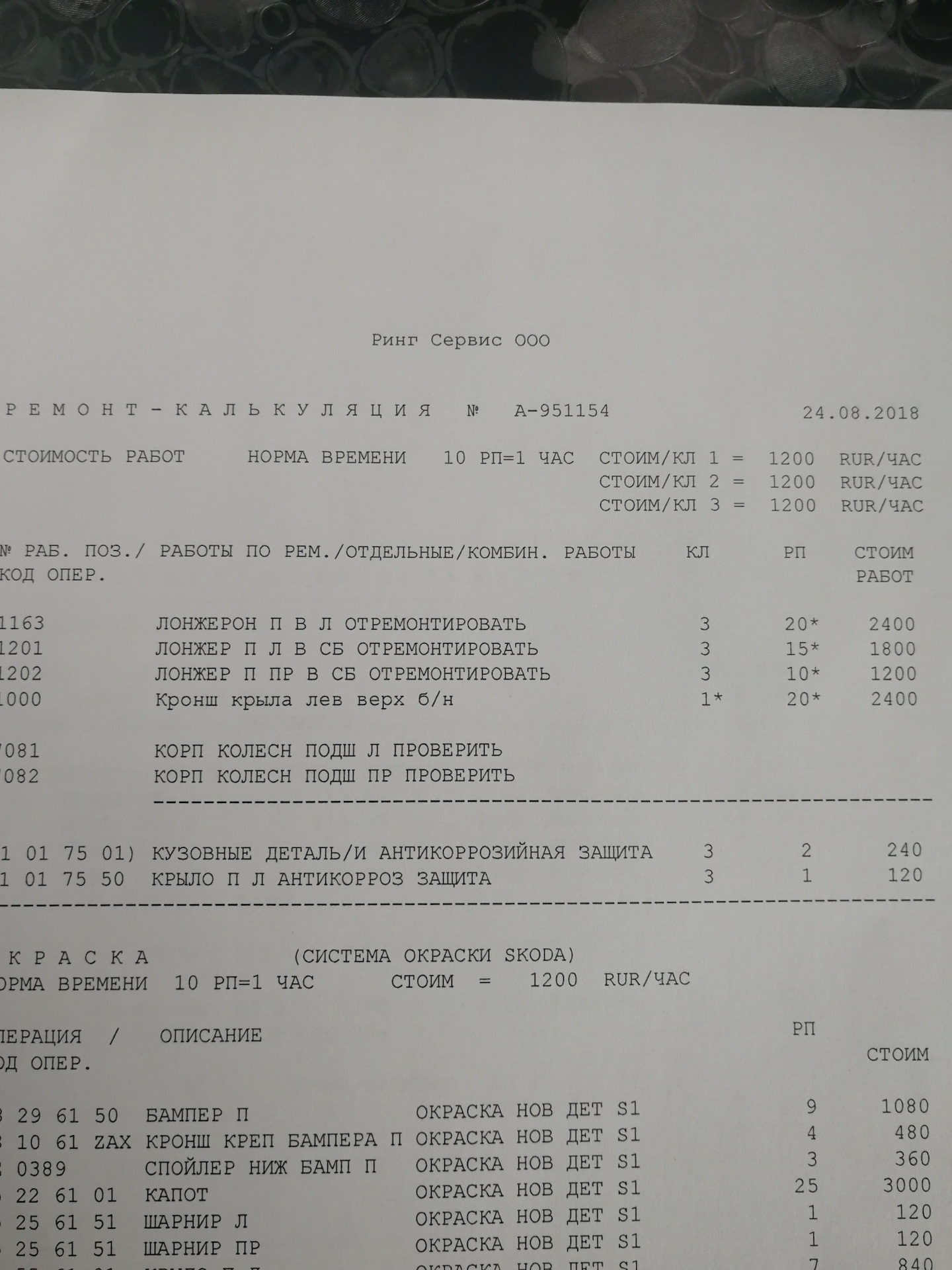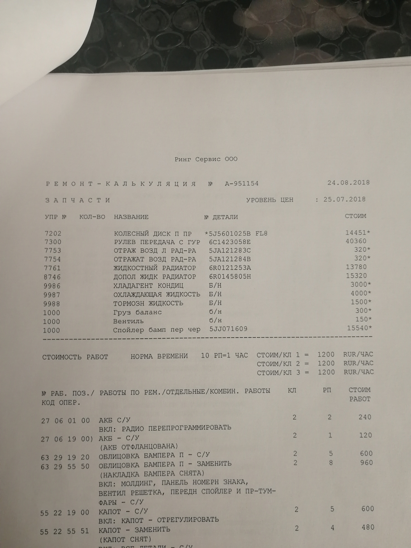 Получив направление, отвёз в сервис ауди, там наконец то поставили в очередь, на 5 день разобрали кузовщину и на 12 день перебрали ходовку, итак спустя 2 недели составлена калькуляция и отправлена в страховую, теперь жду ответ страховой.