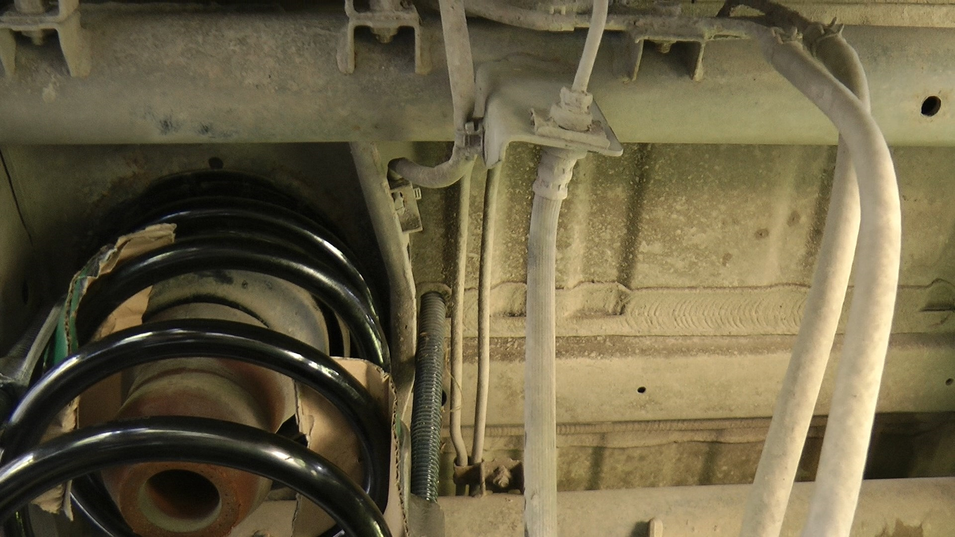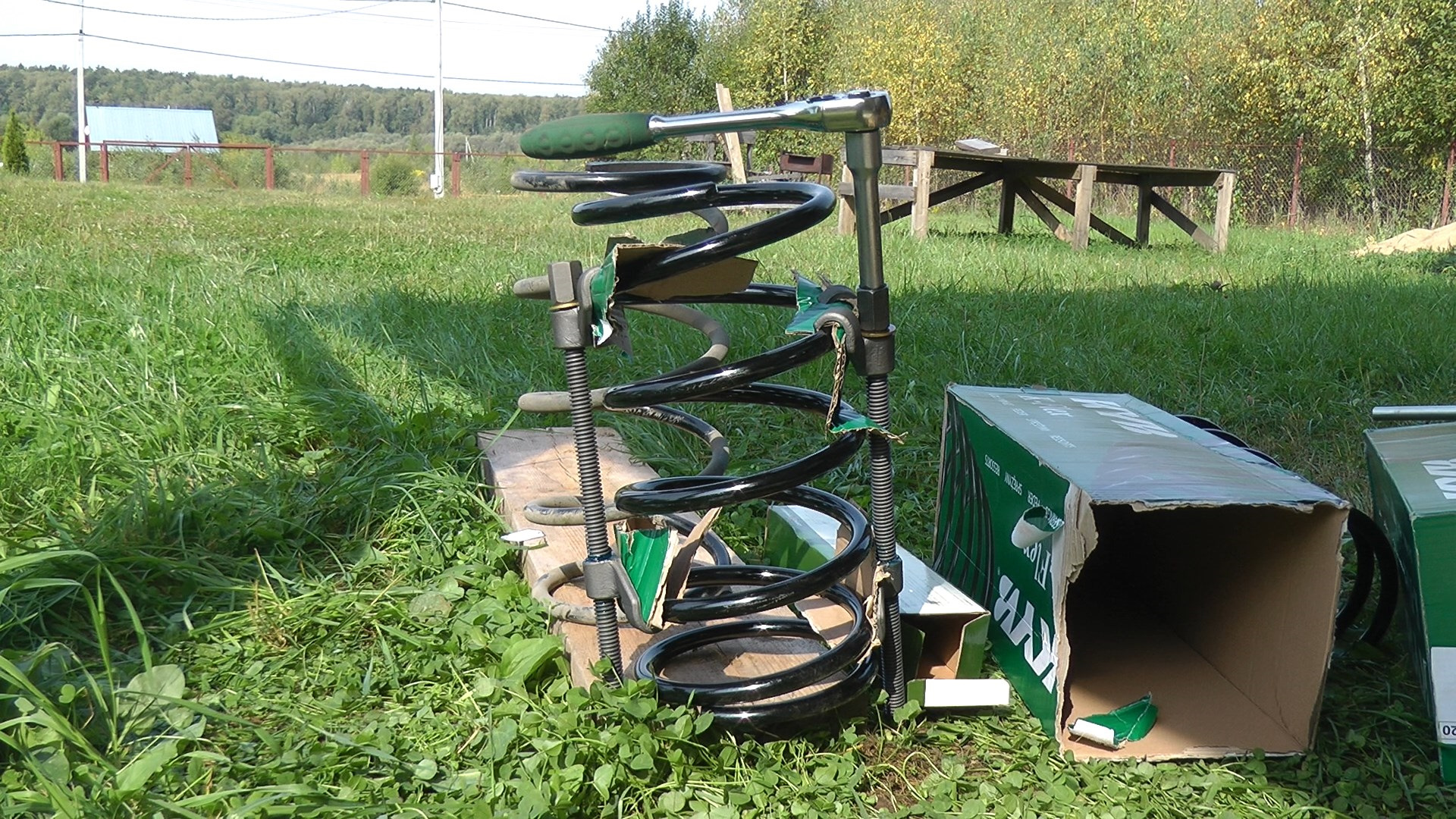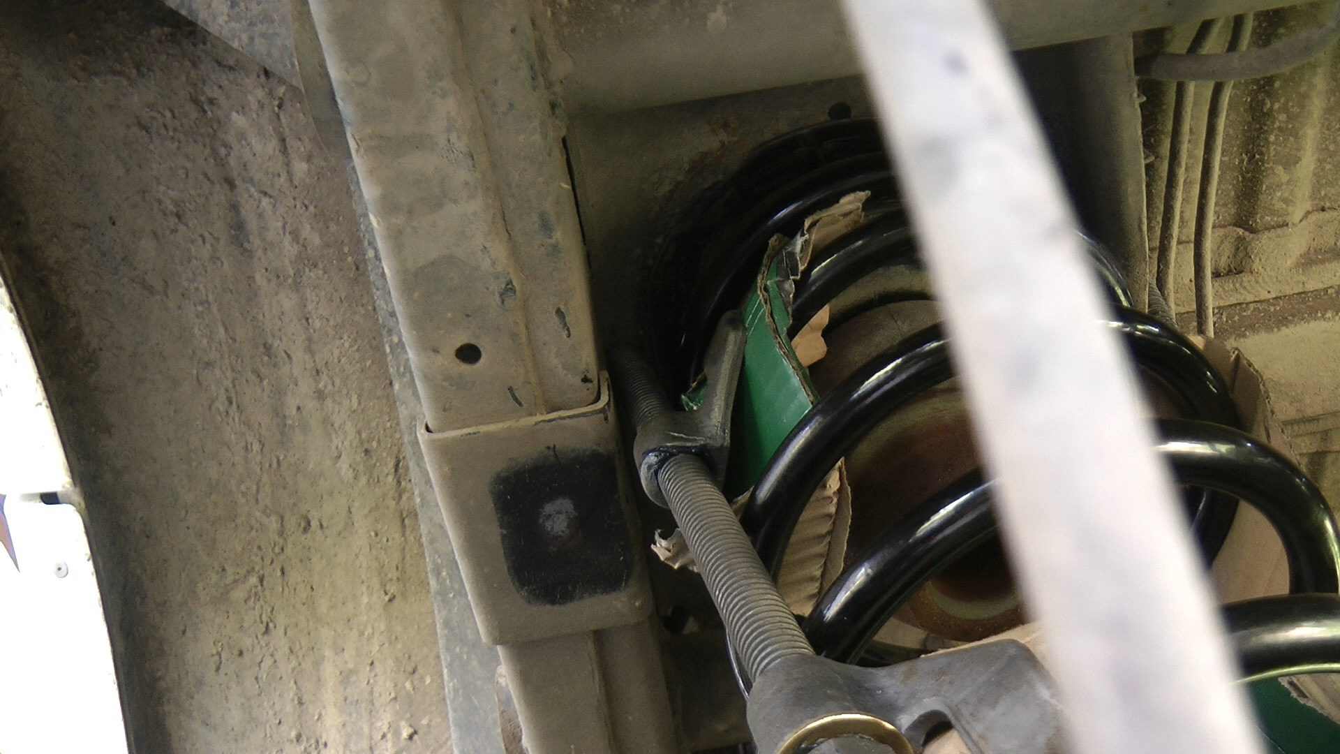 На фото видно, что я пожадничал, стяжки упираются в кузов. Нужно было еще сантиметров 5 отхватить. Но было влом еще раз повторять упражнение с пружиной.