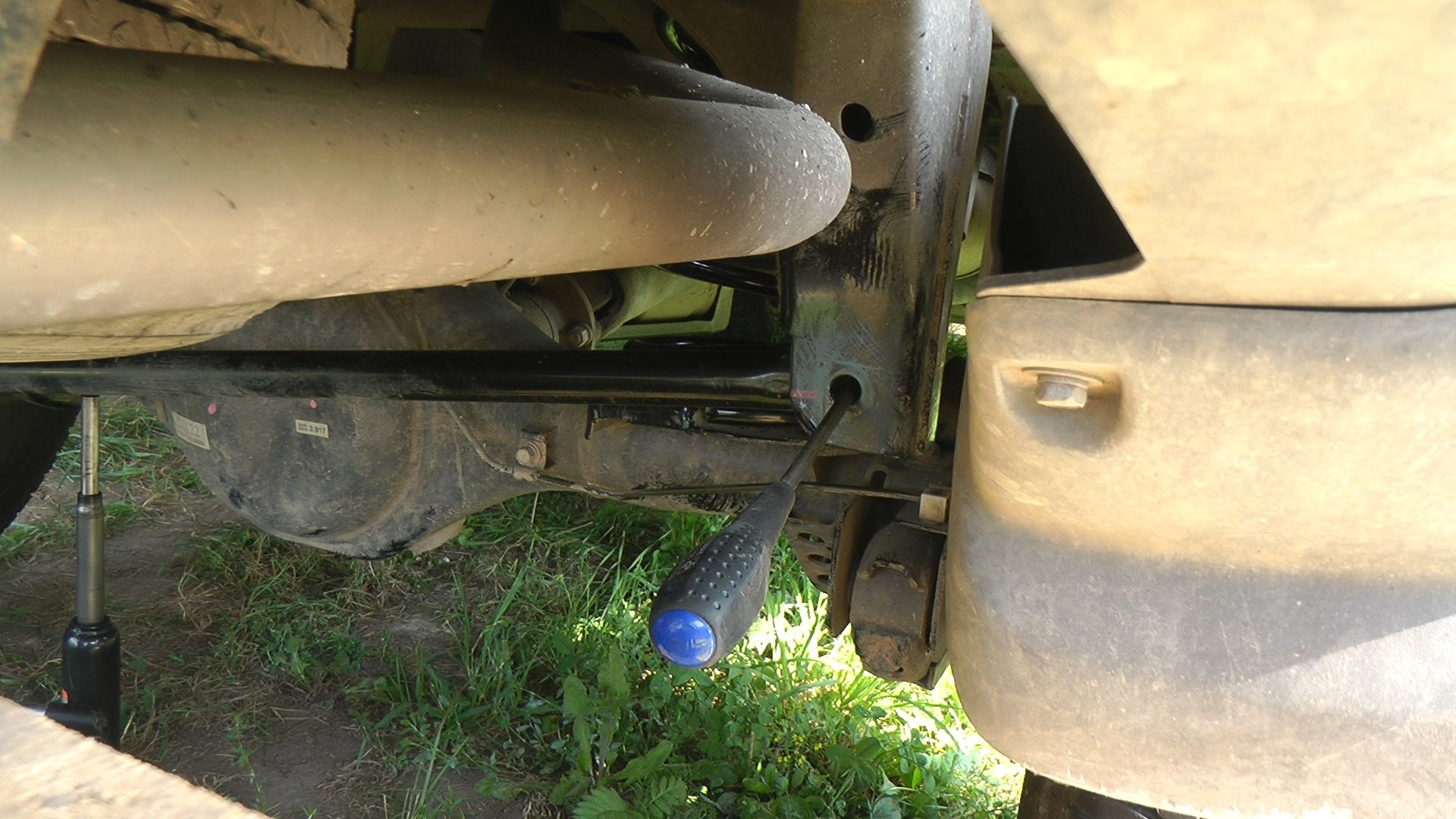 На помощь пришел высвободившийся домкрат, и вдвоем с трещоткой мы одержали победу над кривизной (болт удалось вкрутить).