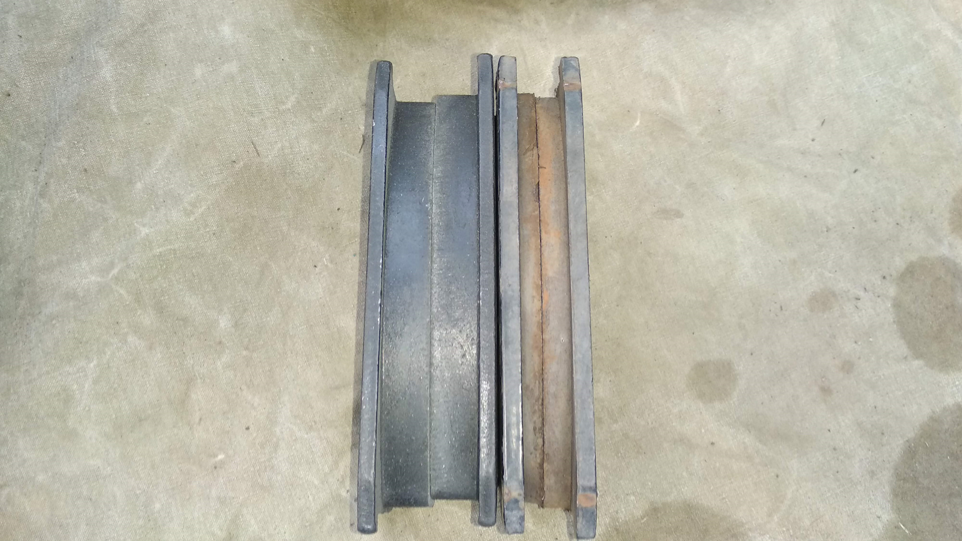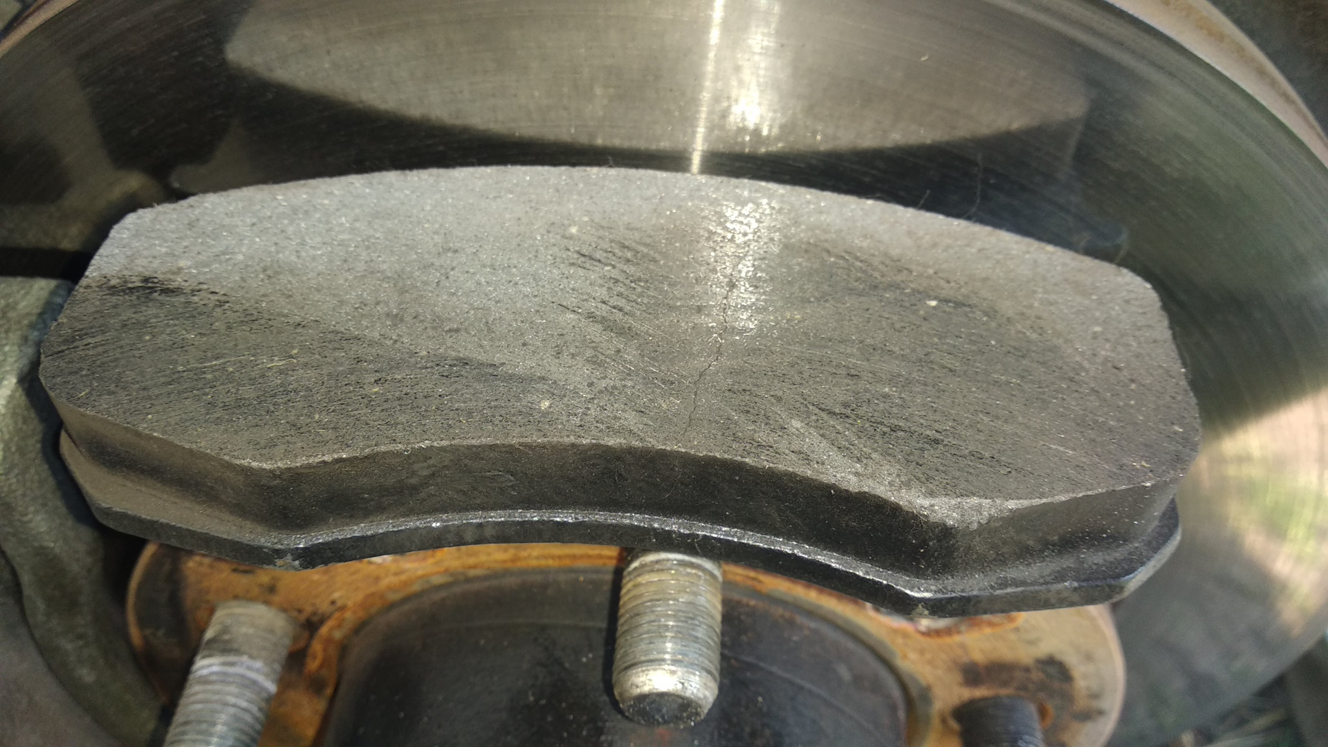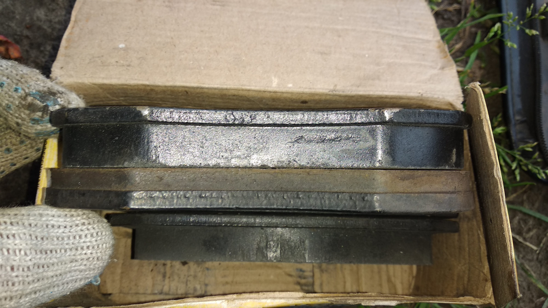 Спустя некоторое время взялся менять смазку в поворотных кулаках и решил установить колодки по одной, поездить так месяцок, пока первые притрутся и установить к ним пару. Заменил смазку в одном кулаке, а второй оставил на завтра и вот на завтра меняя смазку во втором кулаке обнаружил, что новые колодки лопнули.
