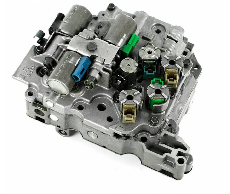 www.sonnax.ru/shemas/AW55-50SN.pdf Переборка родного гидроблока результатов не дала — сначала стало хуже, а потом адаптировалась и стало как раньше. Драйв включался с большой задержкой и горит ошибка по соленоиду S1. Нашел на разборке б.у коробку с замятым поддоном и без трёх соленоидов за 5000р. Приехал, а она оказалась не та (AW55-51) похожа, но разница в гидроблоках, а мне то он и нужен. Гайцам отдал по дороге 2000р за неоплаченные штрафы — терять нечего, взял коробку. Начал разбирать — там воды больше чем масла (а так масло чистое). Гидроблок весь заржавел — плунжеры не двигались. Я его весь разобрал, промыл. Всё как с первым гидроблоком. На всех сайтах в интернете все пишут, что гидроблоки разные, невзаимозаменяемые, что ничего не поедет и загорится куча ошибок. Пробуем. Чтобы снять гидроблок без снятия коробки, нужно её поднять вверх. Снимаем верхнюю и нижнюю растяжки, откручиваем переднюю опору и задираю коробку лебёдкой, чтоб поддон вышел из под подрамника. Снимаю свой гидроблок переставляю на новый недостающие соленоиды ставлю его.