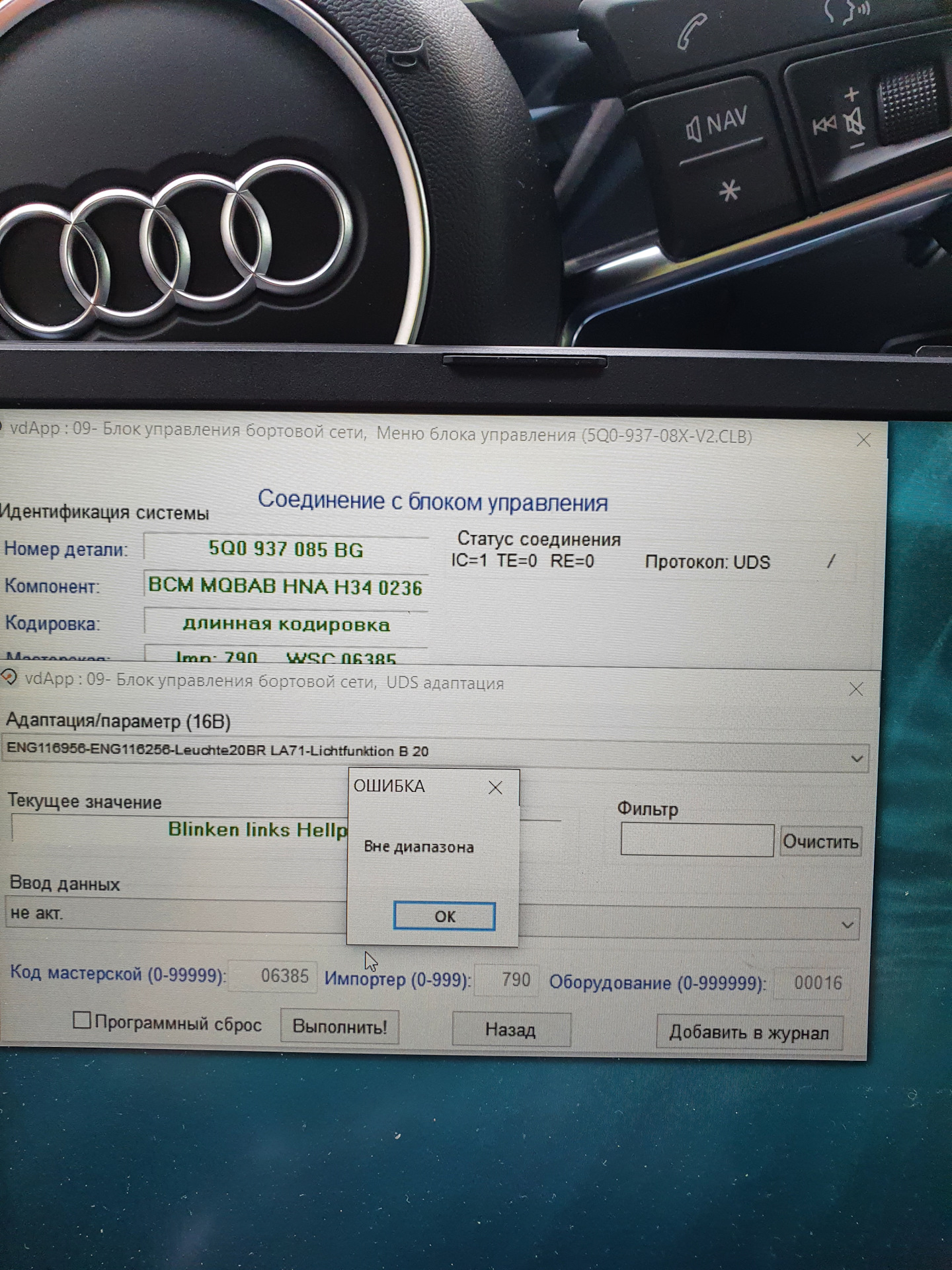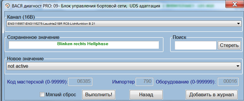 Я в замешательстве. Подошел код к блоку 42013. Спасибо большое! Только не решил проблему — в списке каналов адаптаций вообще нет каналов ламп((( Есть добавление ключей, блокировка дверей и т.д. Каналов со светом нет.Блок 0K0-937-084N-BCM PQ35 B 122 0184. 46-ой блок есть в списке установленного оборудования, только Вася диагност не может с ним связаться.
