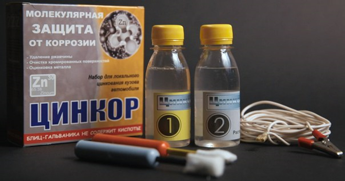 Прежде всего, я использовал препарат «ЦИНКОР». Ссылка на сайт — www.zzz-zincor.ru/description/index.html. Не буду подробно останавливаться на принципе его действия и приёмах работы – всё это описано на сайте производителя. Суть метода чем- то напоминает заводскую гальваническую оцинковку кузова ZnO с предварительным вытравливанием и удалением ржавчины и обезжириванием поверхности.